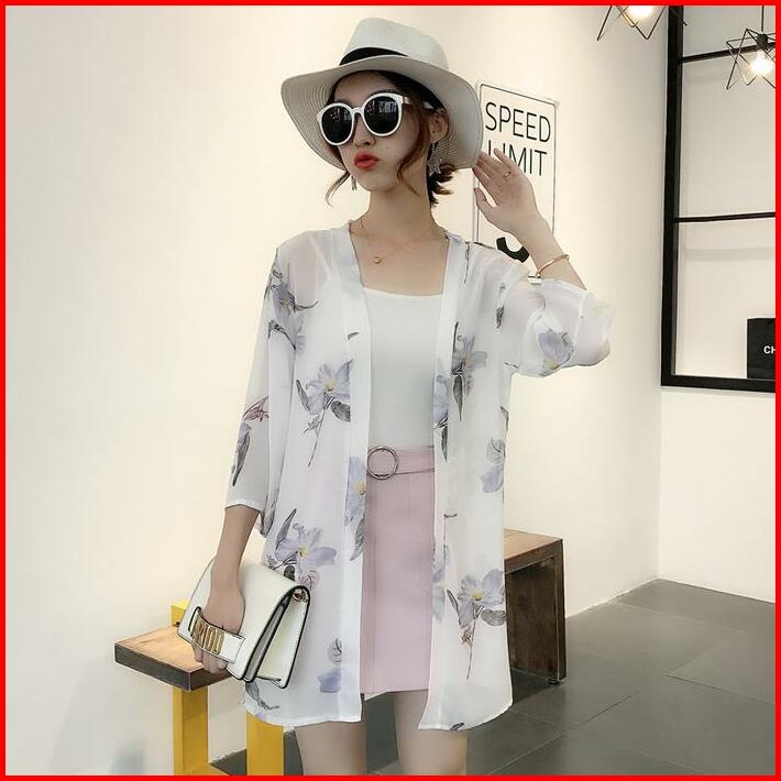 Outer Brukat Liburan Tepi Laut Pakaian Pelindung Sinar Matahari Sifon Wanita Shawl Pantai Berukuran Sedang Selendang Kas