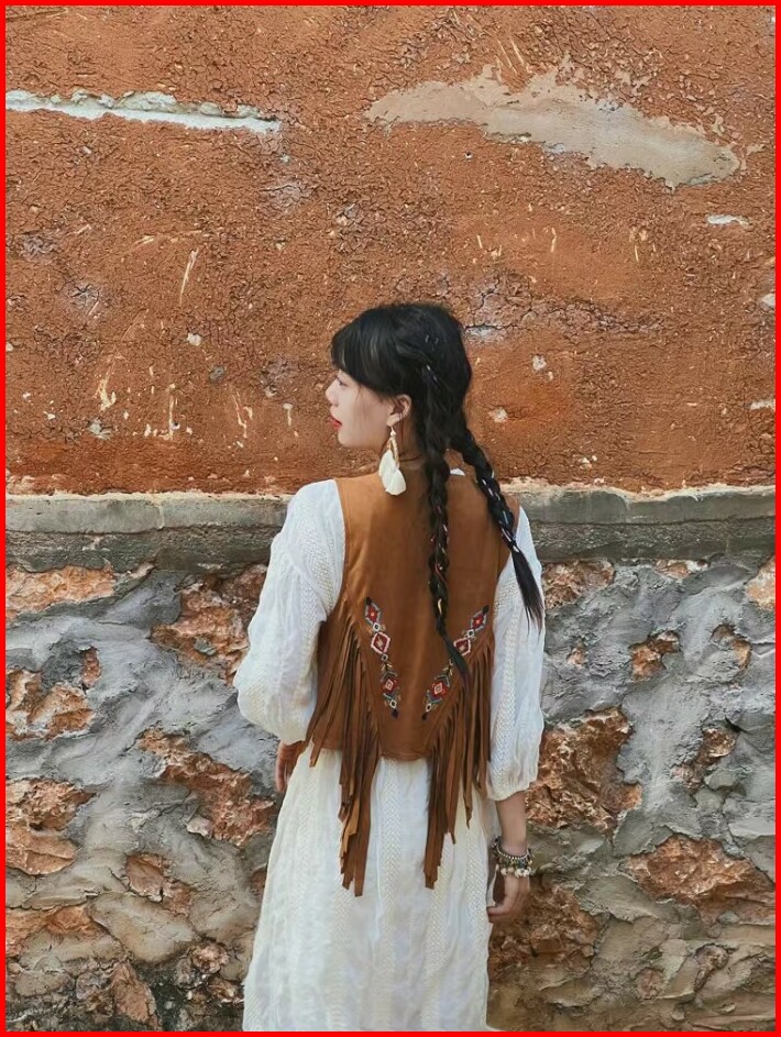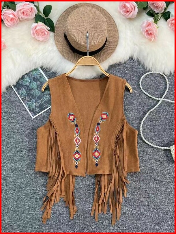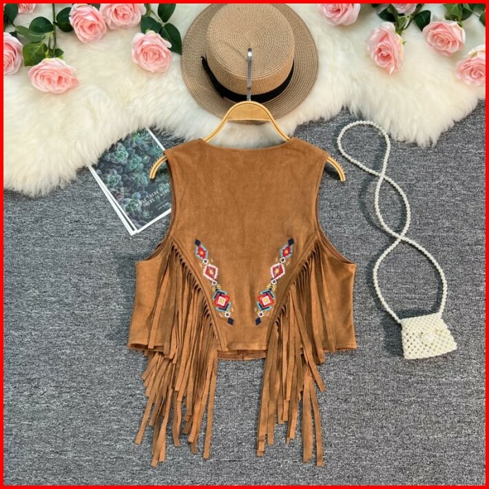 Brown Bohemian Vest Crop Top Gypsy Outer Boho Wanita Cardigan Kimono