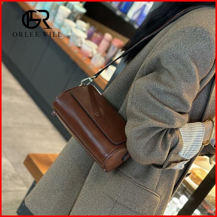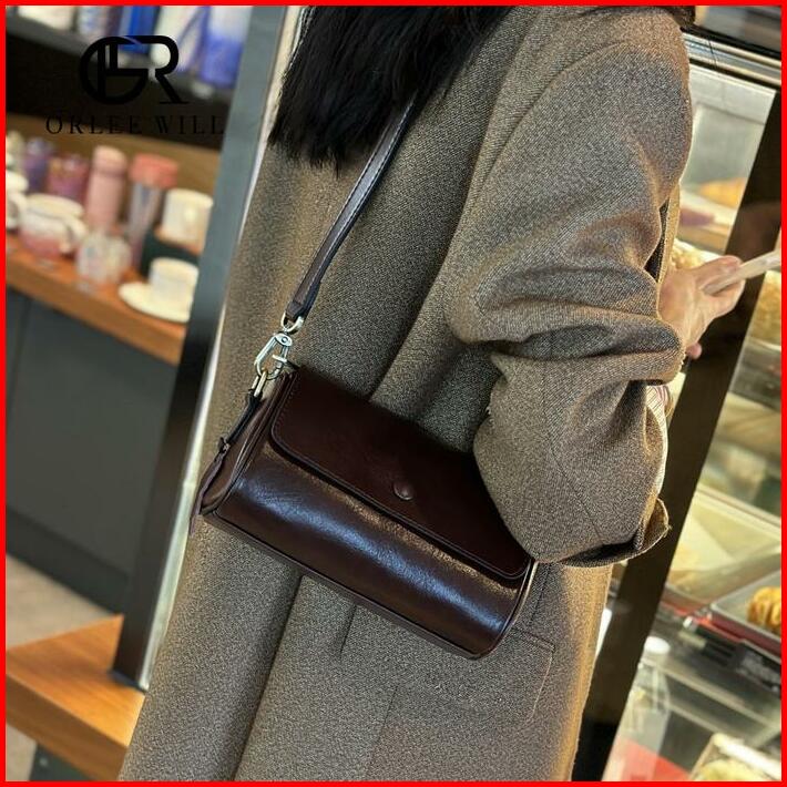 Orlee Will Tas Wanita Kulit Asli Retro Tas Bahu Kulit Sapi Lapis Pertama Bertekstur Tas Selempang Ol-07ol-07