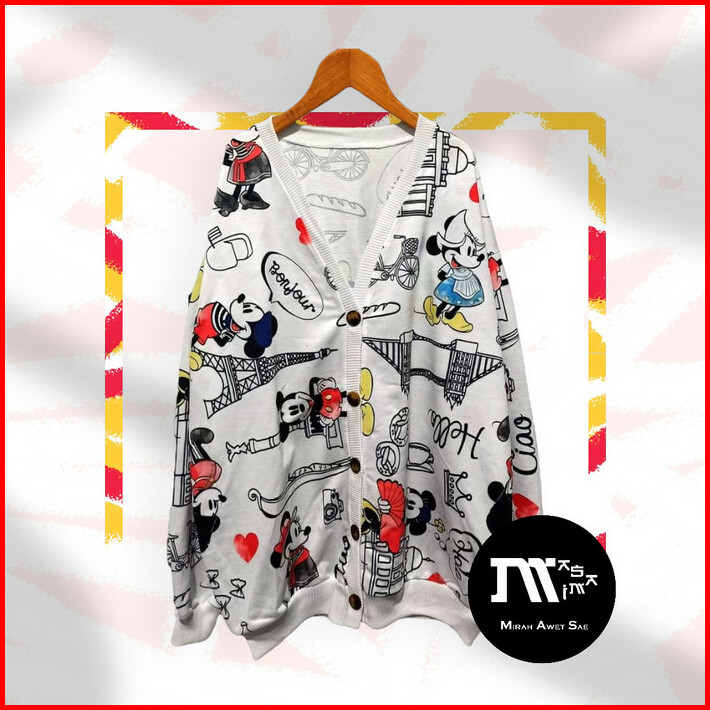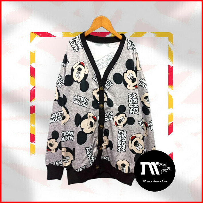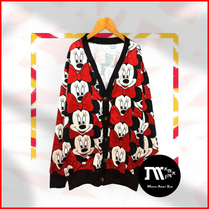 Sweater Cardigan Bangkok Full Print Kartun Mickey Minnie Mouse C01