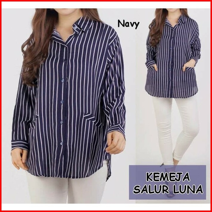 Kemeja Basic Salur Stripe Wolfis Atasan Shirt Wanita Barfie