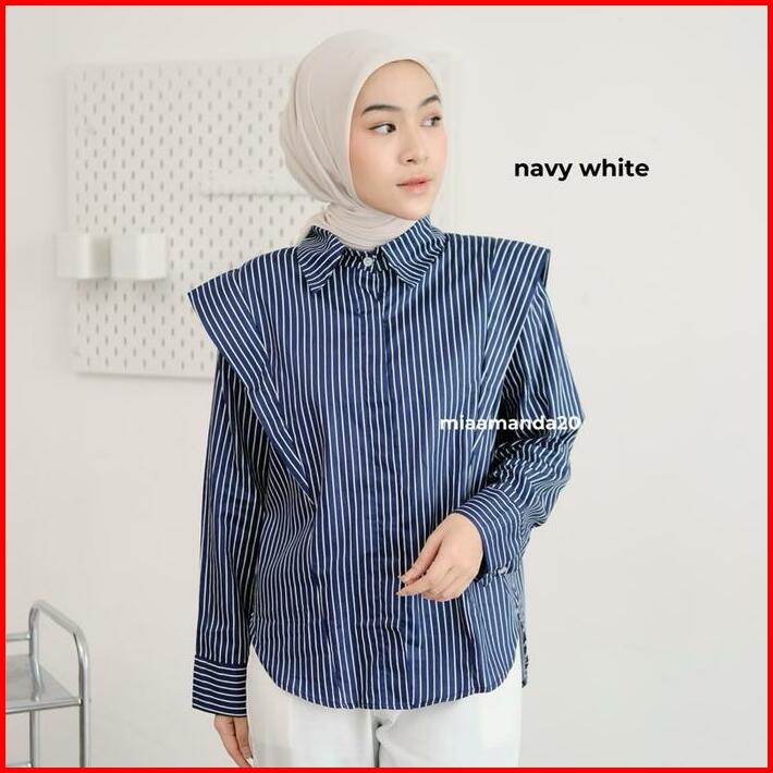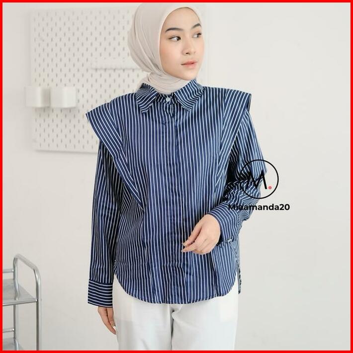 Vella Shirt Kemeja Wanita Kemeja Stripes By Mia Amanda Katun Jepang Atasan Baju Casual Salur