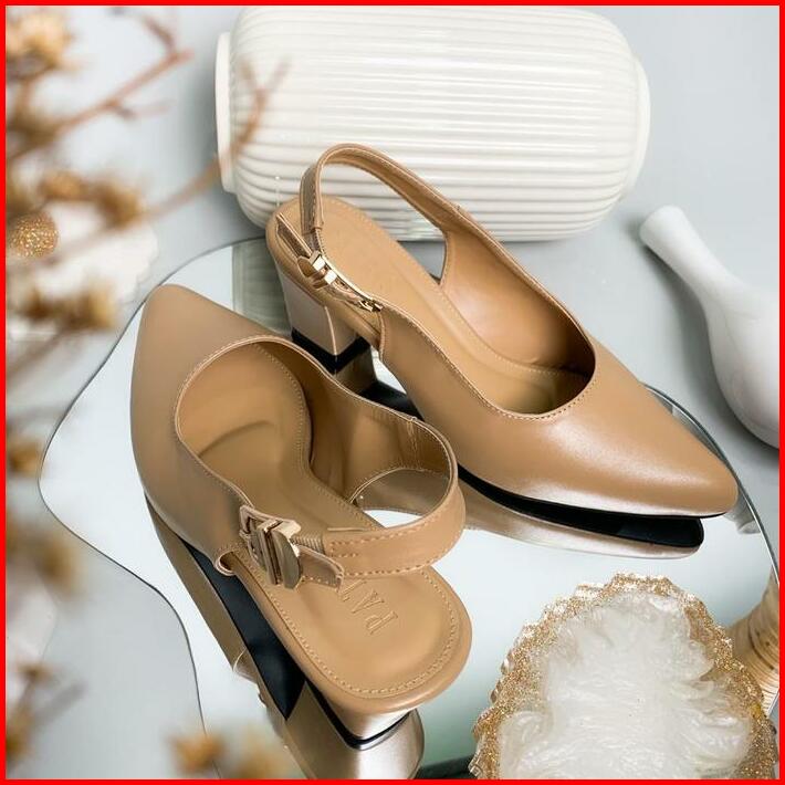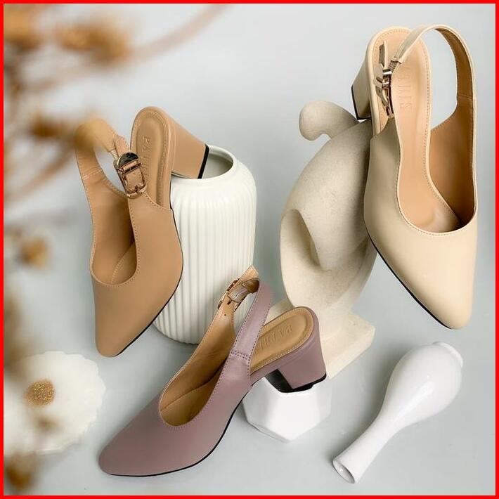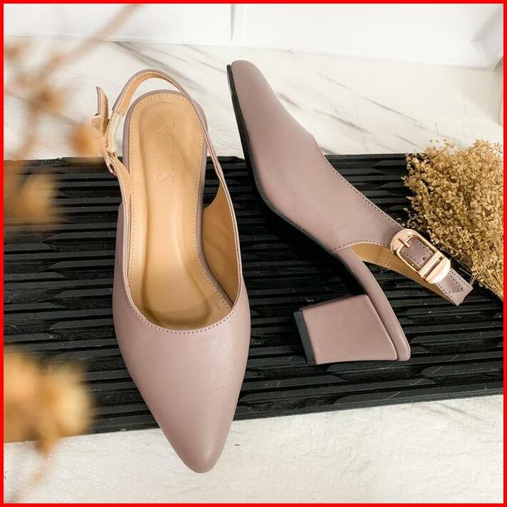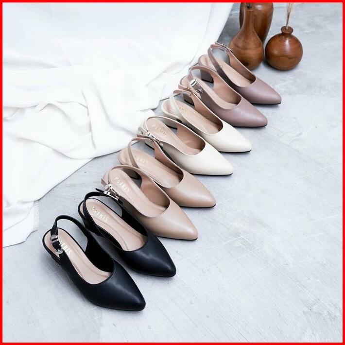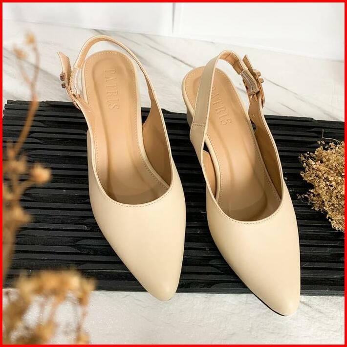 Patris Lenora Mules Wanita Heels Hak 5 Cm Black Shoes Sendal Pesta