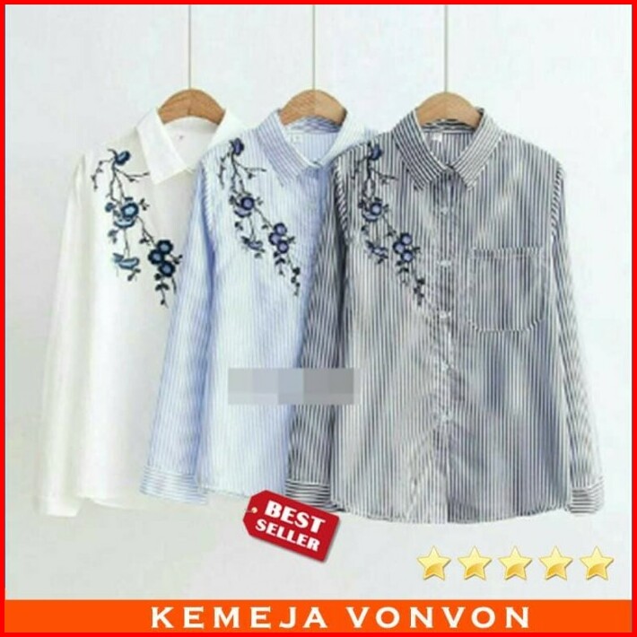 Baju Atasan Kemeja Wanita Cewek Vonie Bordir Blouse Tunik Salur