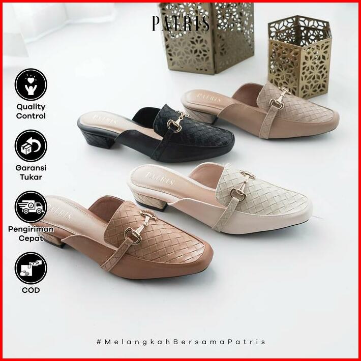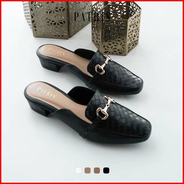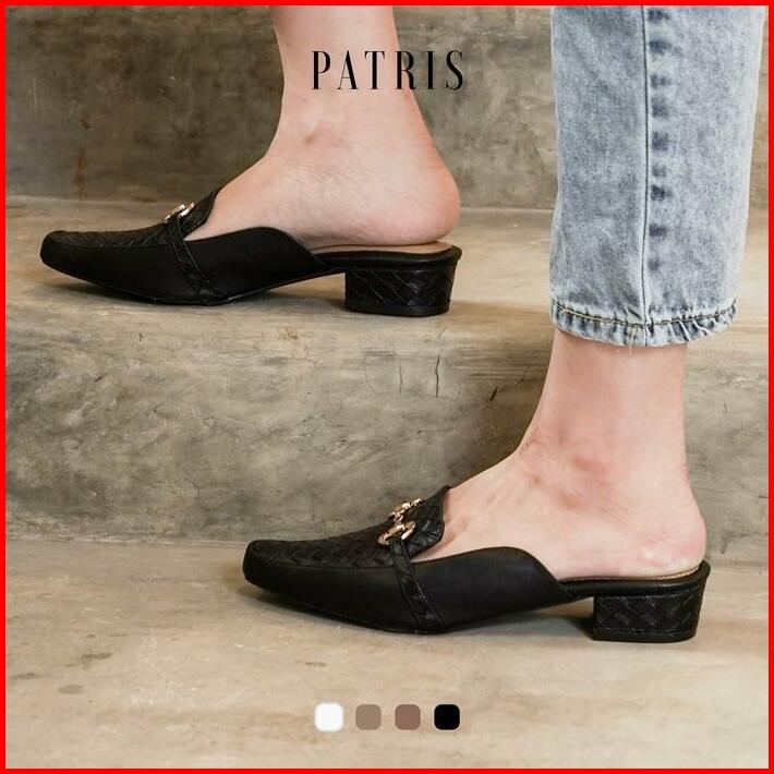 Patris London Mules Wanita Heels Hak 3 Cm Black Shoes Sendal Pesta