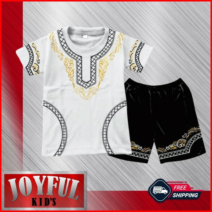 Setelan Pendek Baju Kaos Anak Laki-laki Koko Putih 1