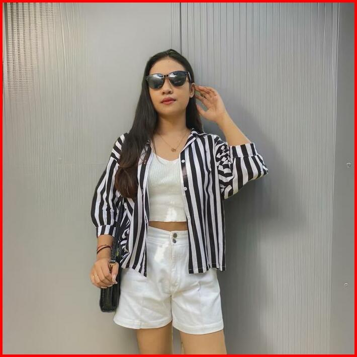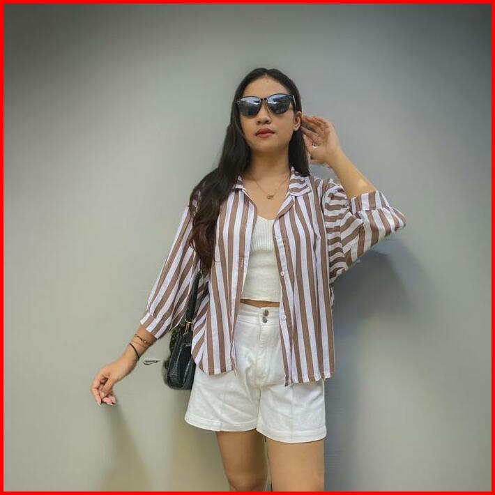 Kemeja Jumbo Setrip Kemeja Jumbo Garis Kemeja Jumbo Wanita Atasan Cewek Oversize