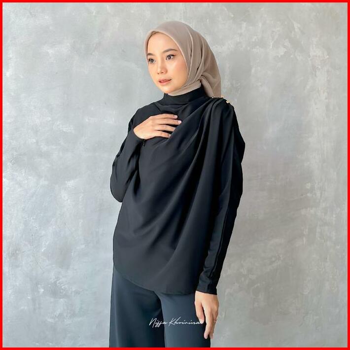Bynissa-agni Blouse-atasan-blouse-pleats-kemeja-motif-kancing-kondangan-wisuda-lamaran-kampus-hangout-rumbai-ootd Hijab-