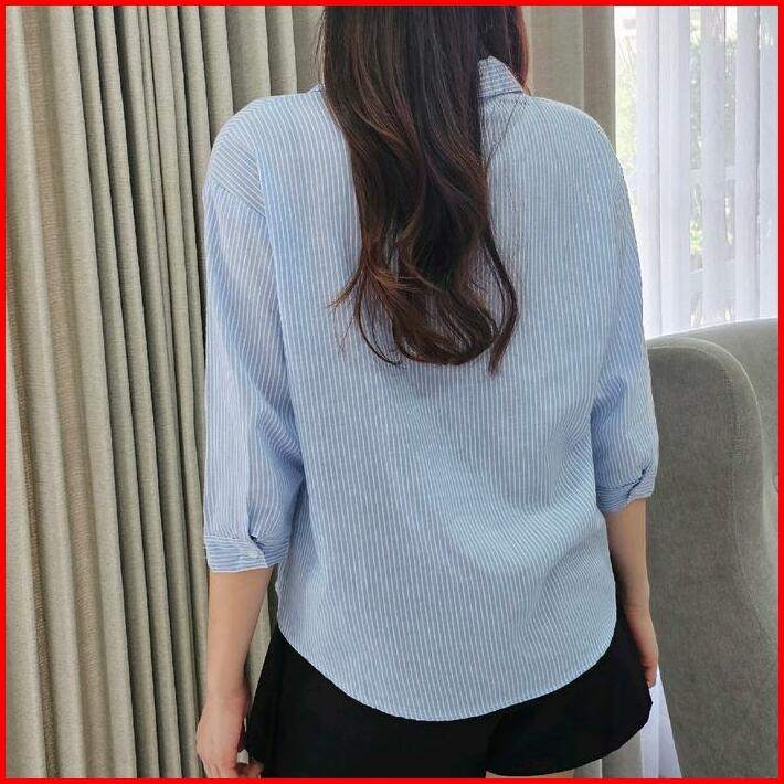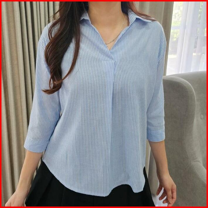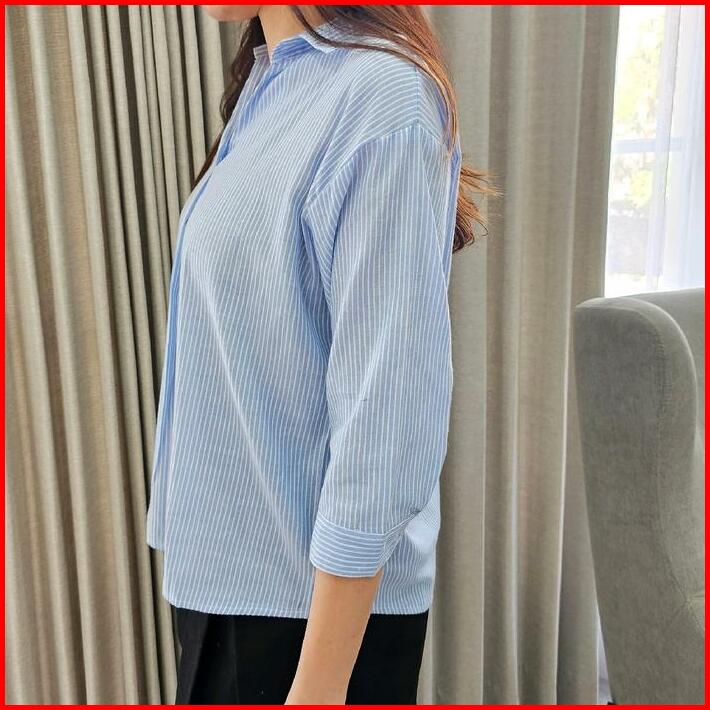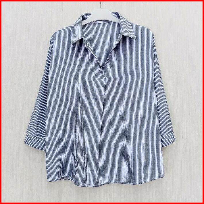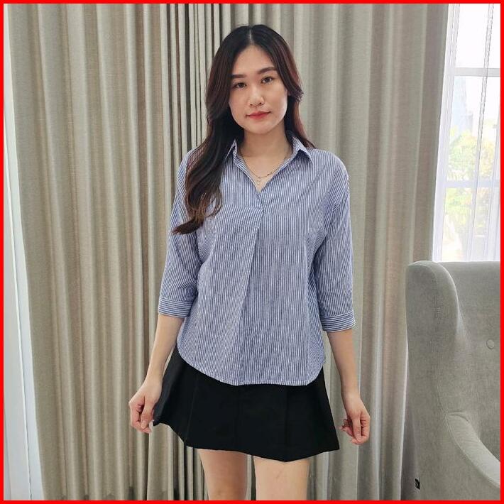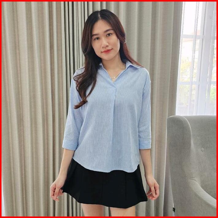 Vona Stripe Shirt Atasan Wanita Kemeja Wanita Setrip Baju Linen Casual