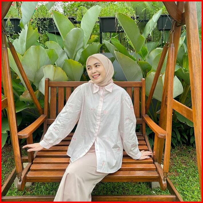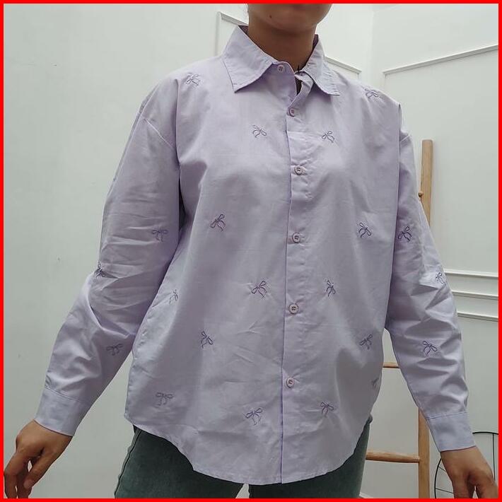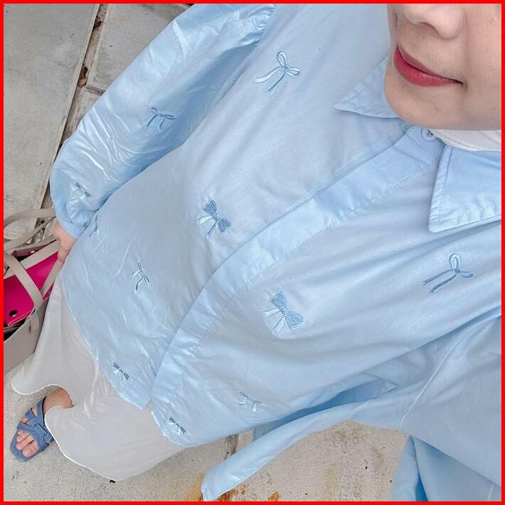 Elena Closet Pita Shirt Kemeja Pita Bordir Ribbon Shirt Atasan Wanita Baju Balon Katun