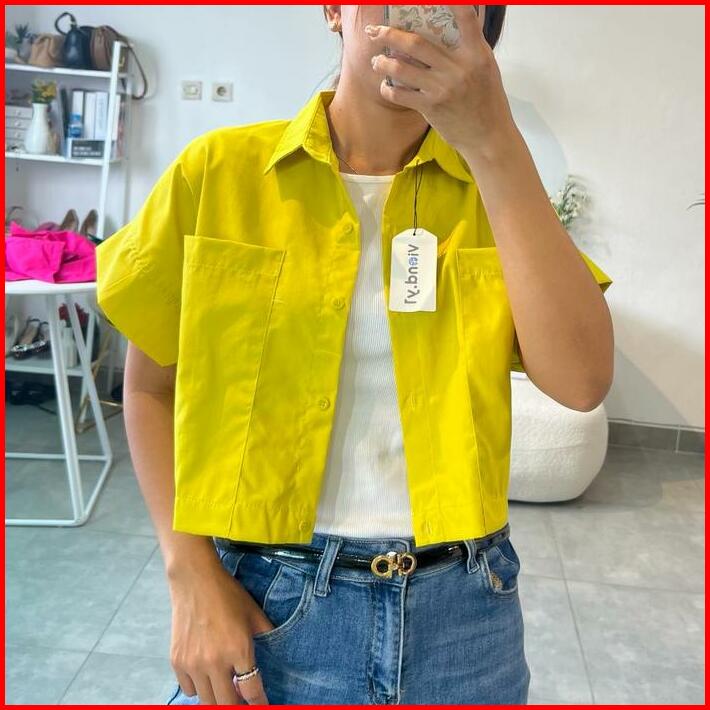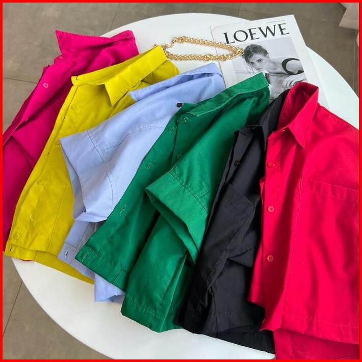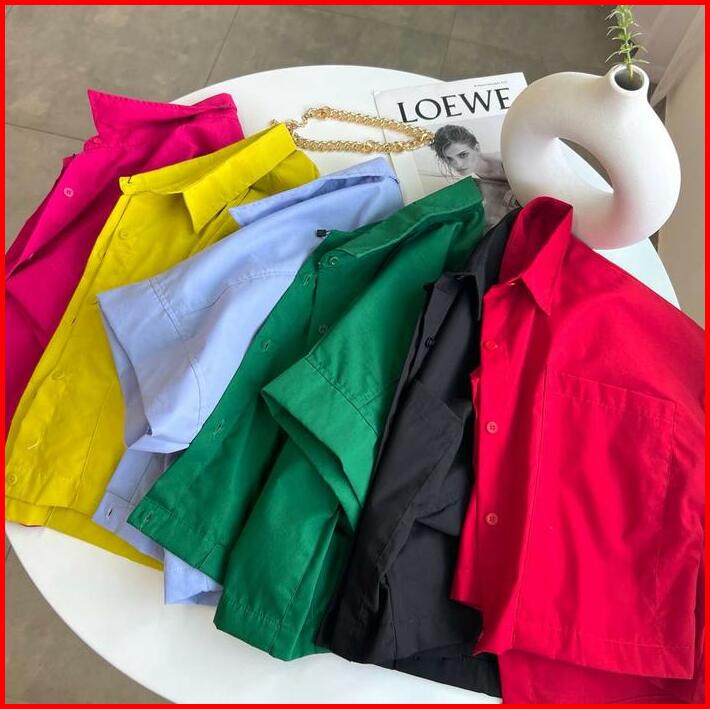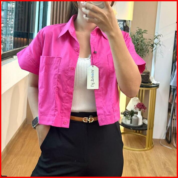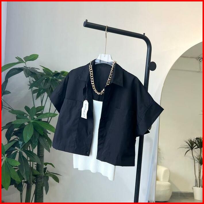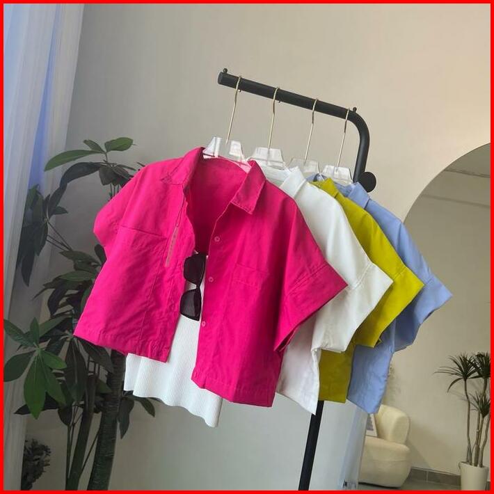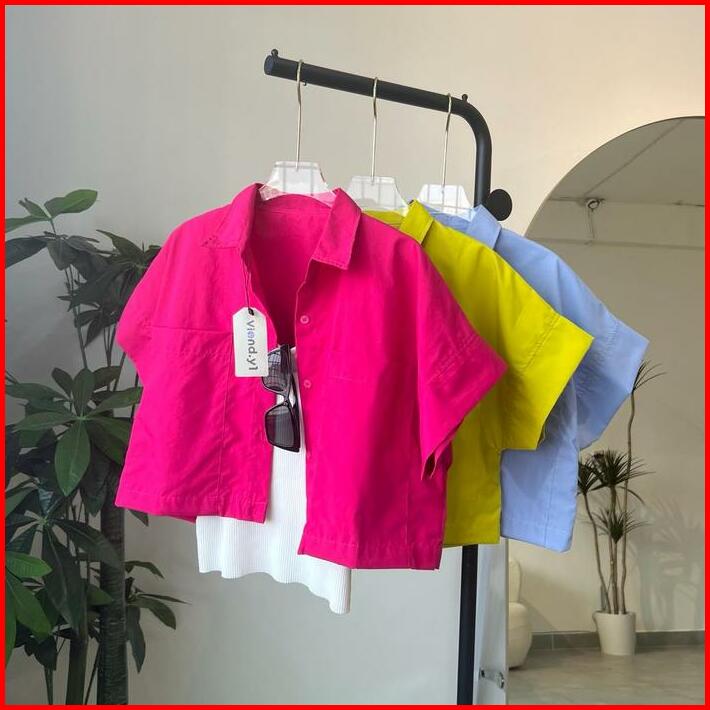 Kemeja Lengan Pendek Kemeja Basic Crop Style Blouse Wanita Korea Katun Poplin Premium E.94