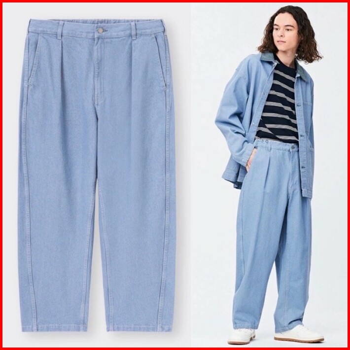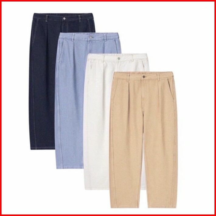 Uniql0 New Tuck Curve Baggy Barrel Wide Leg Pants Celana Panjang