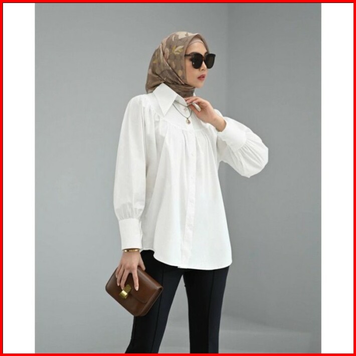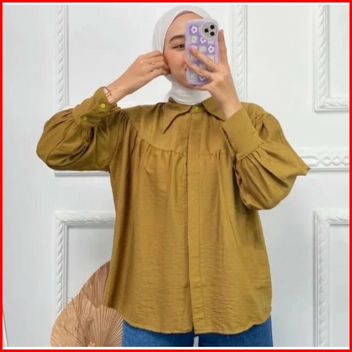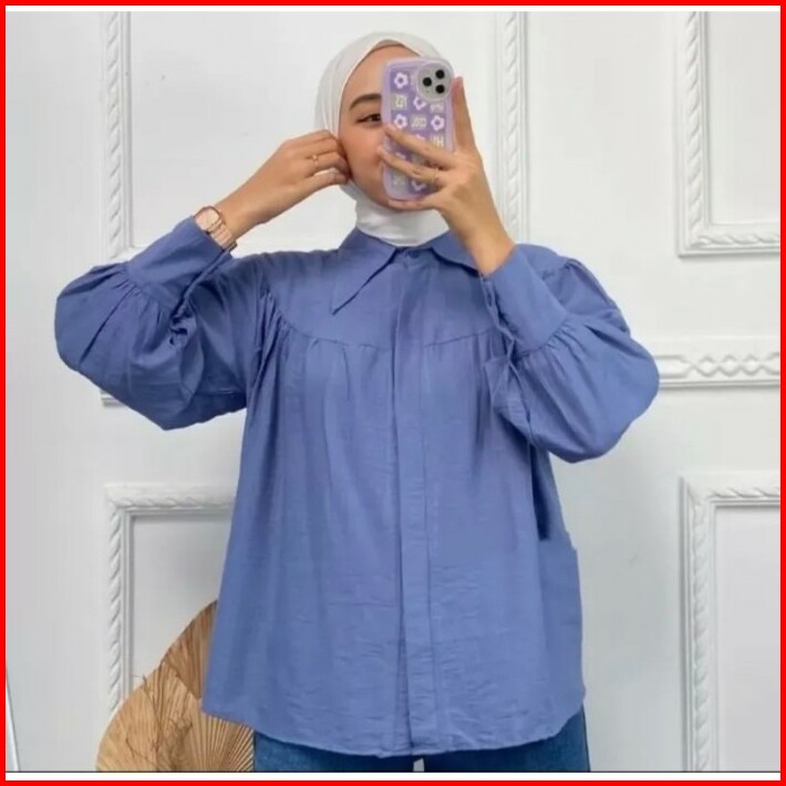 Kemeja Kerja Blouse Wanita Polo Linen Premium