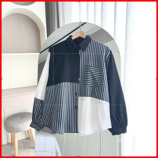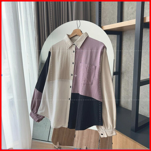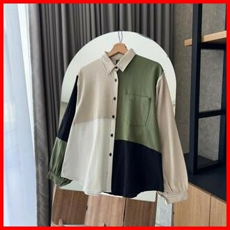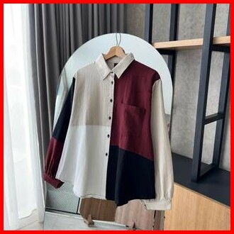 By Hana 768 Kemeja Oversize Kombinasi Linen