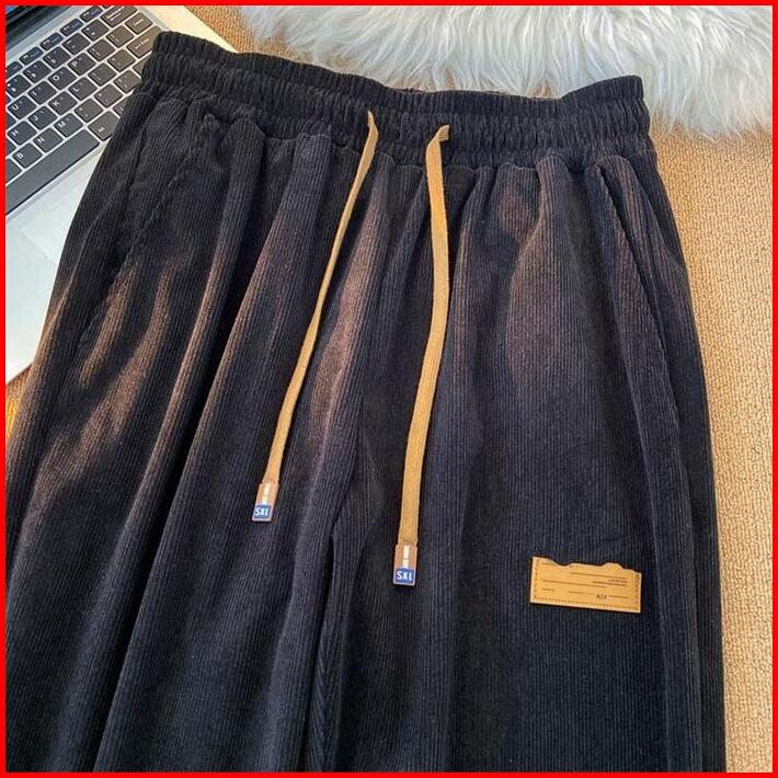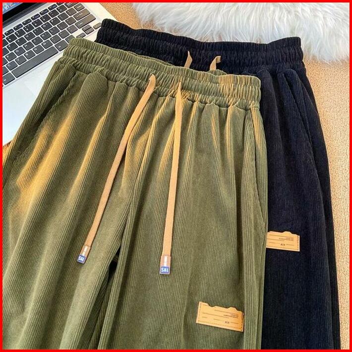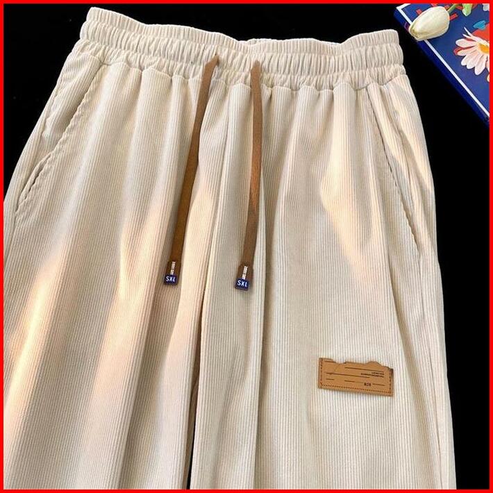 Gdtima Celana Corduroy Wanita Elastis High Waist Baggy Straight Pants
