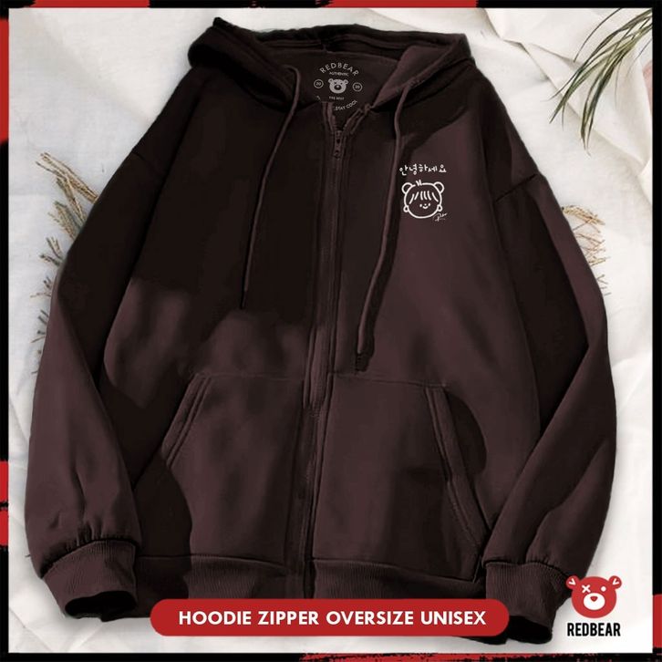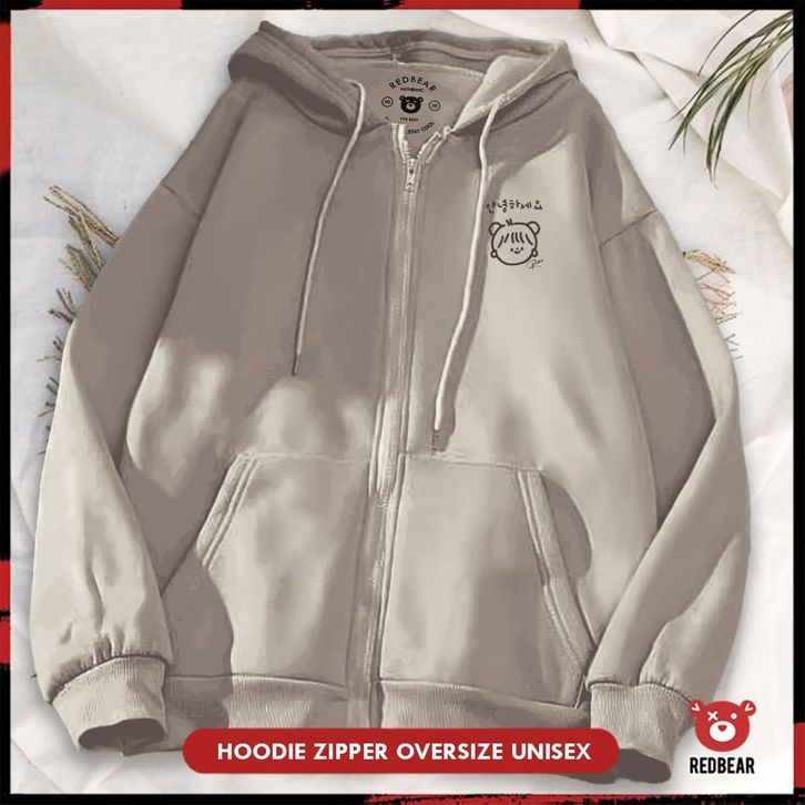 Redbear Zipper Cewe Poni Korea (Sablon) M-XXL | Wanita & Pria original terbaru terlaris elegant