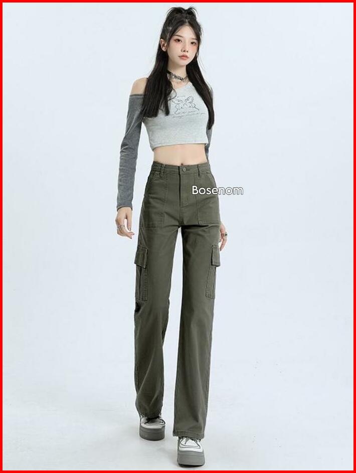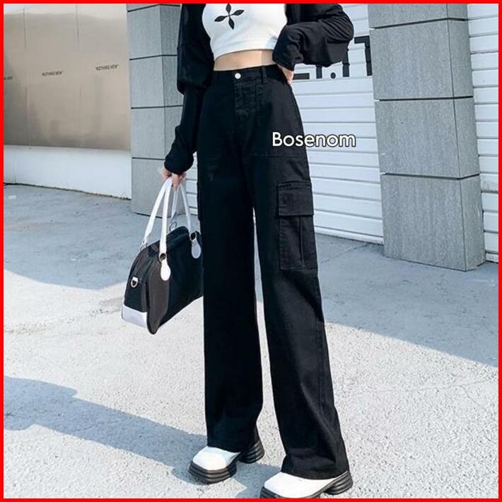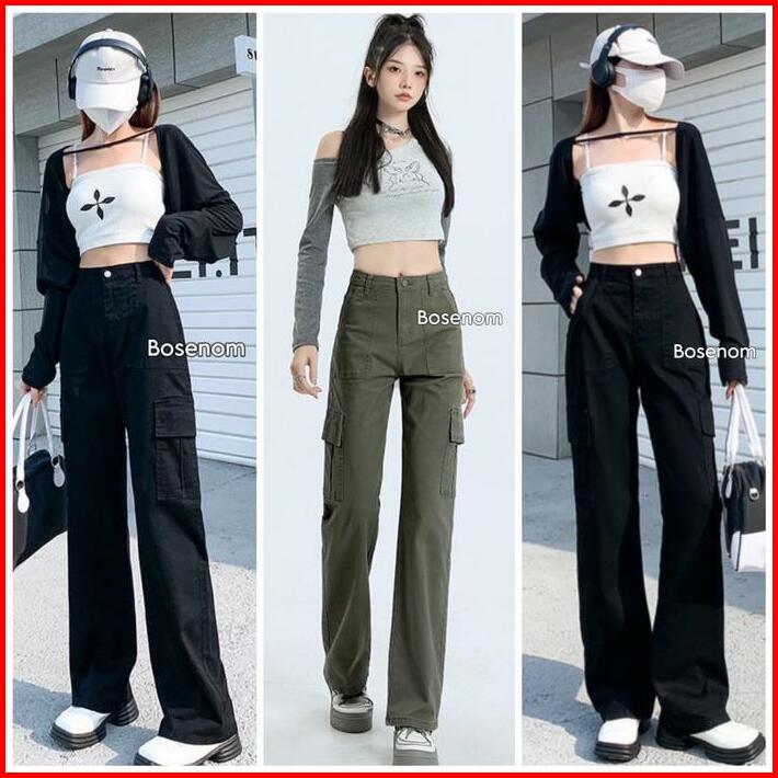 Free Belt Bosenom Cargo Wanita Jins Jeans Highwaist Pinggang