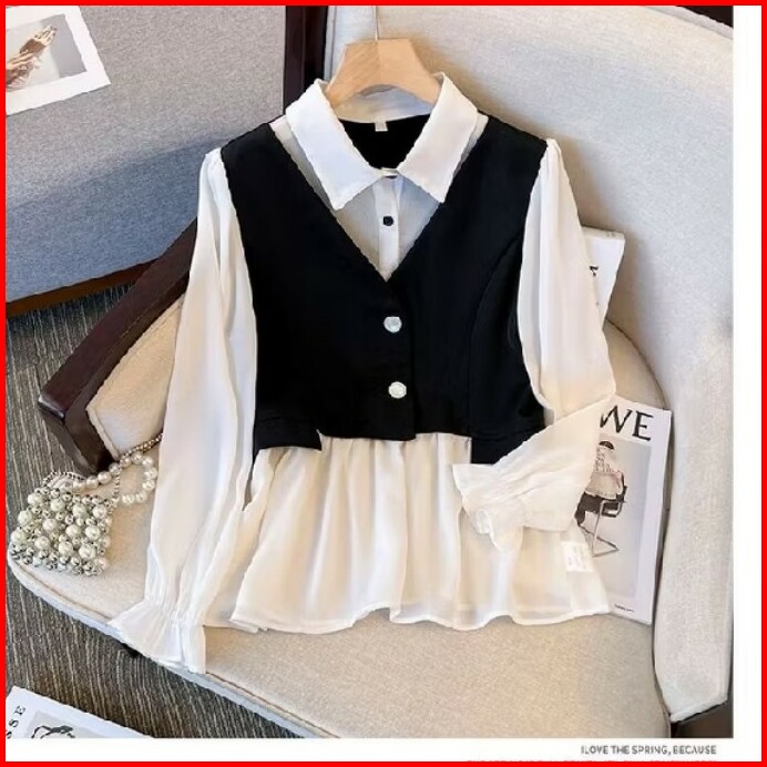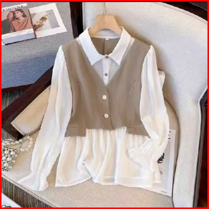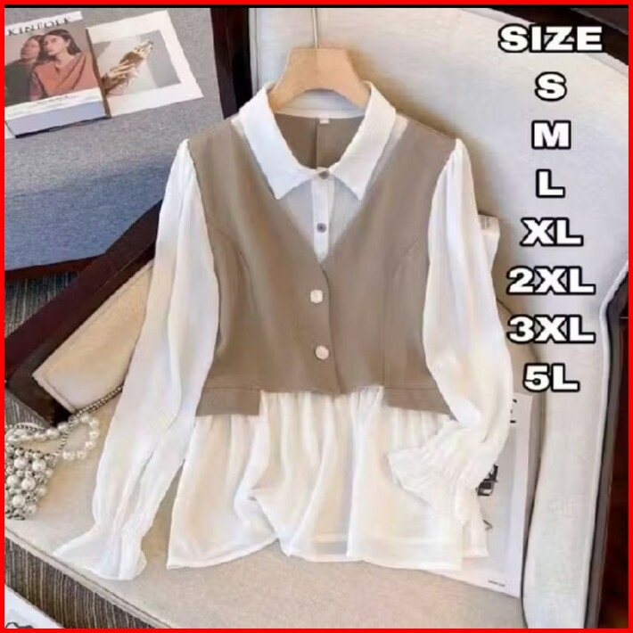 Oki Top Vest Big Size Atasan Wanita Jumbo Kemeja Kerja