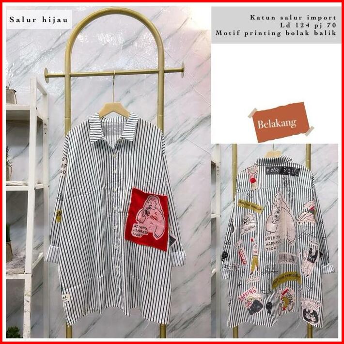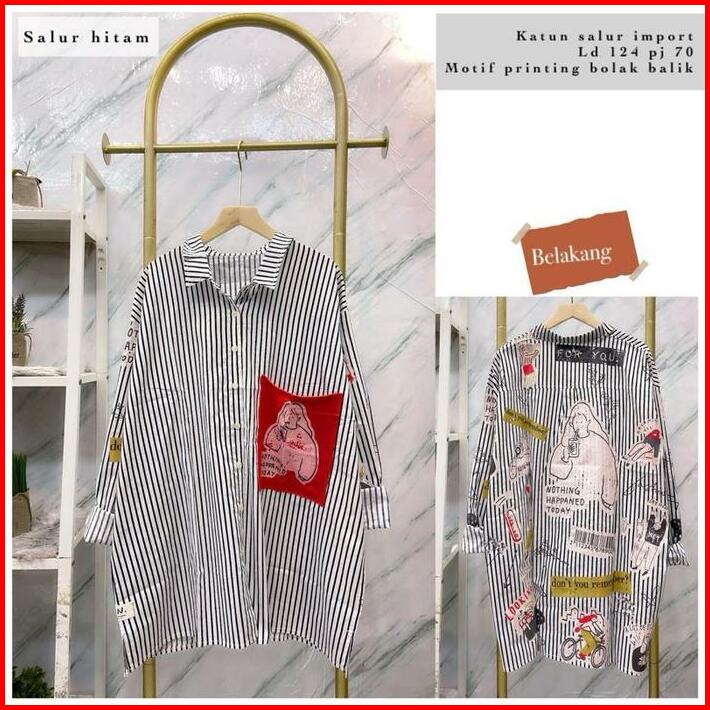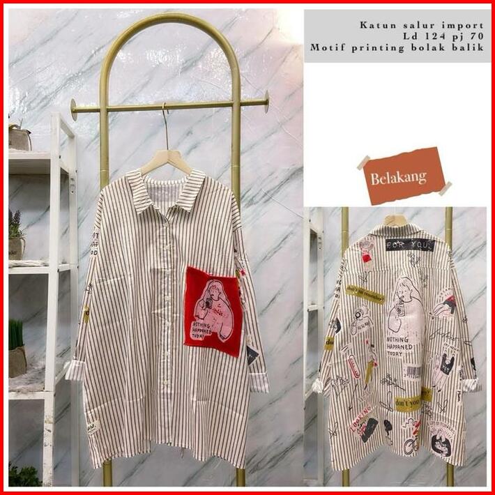 Kemeja Katun Salur Motif Abstrak Premium Bkk Ld 120 Wanita