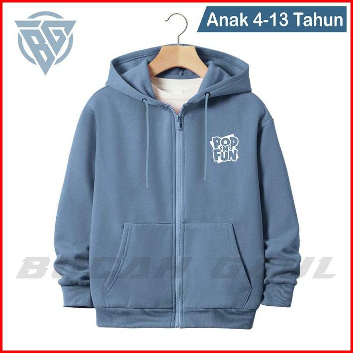 Jaket Sweater Hoodie Zipper Anak Laki-laki Perempuan Usia 4-13 Tahun Pop N Fun Bahan Fleece Tebal Premium Fashion Anak T