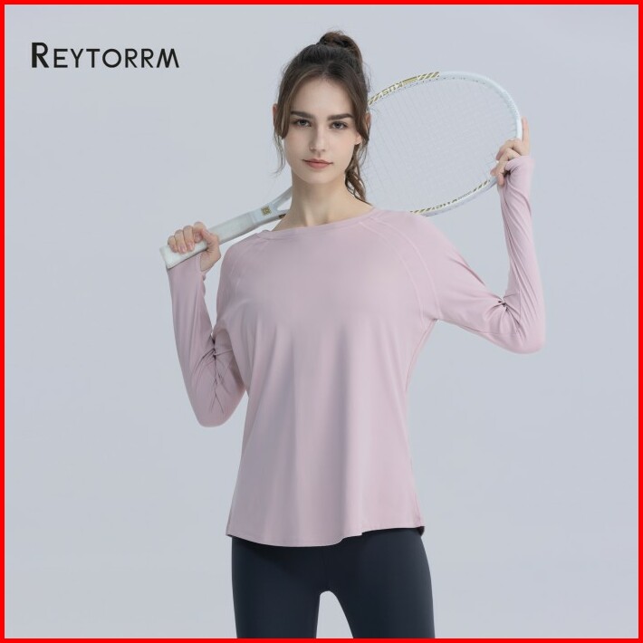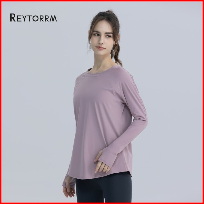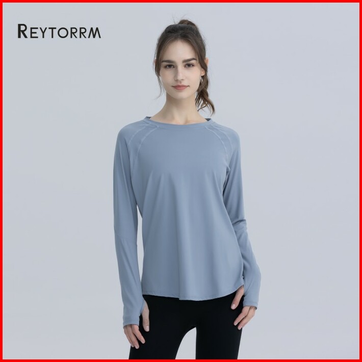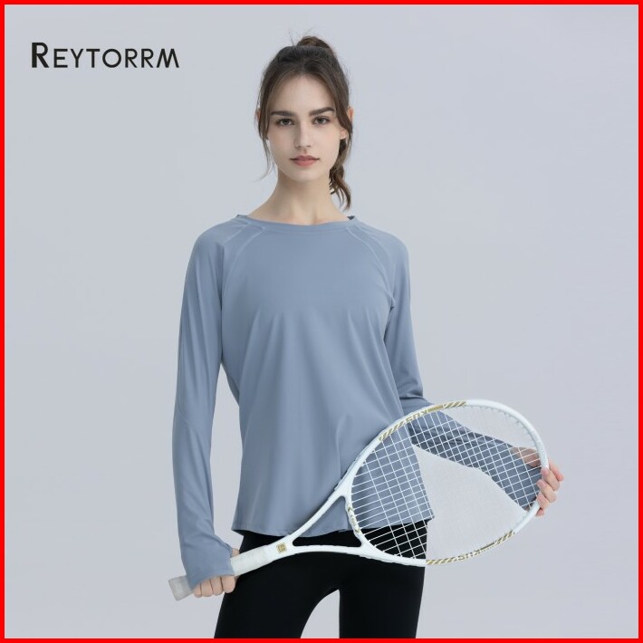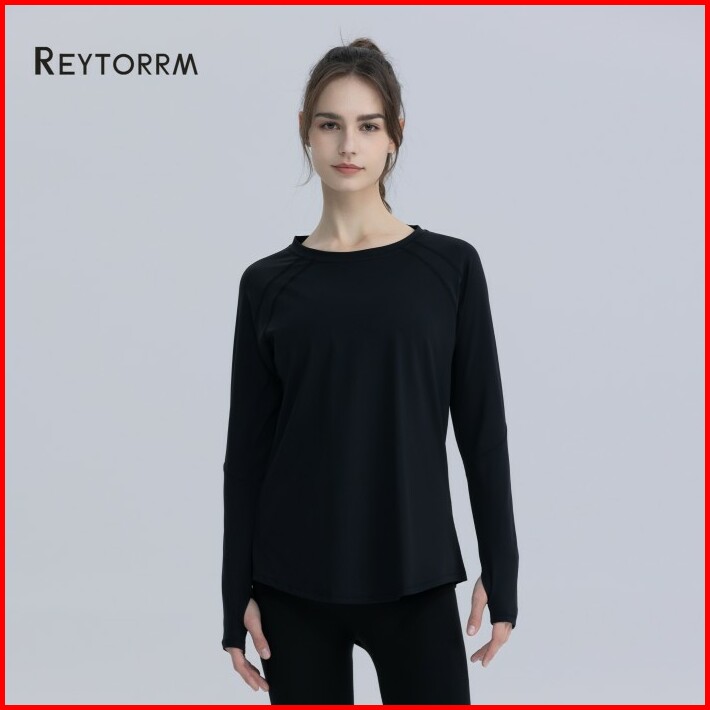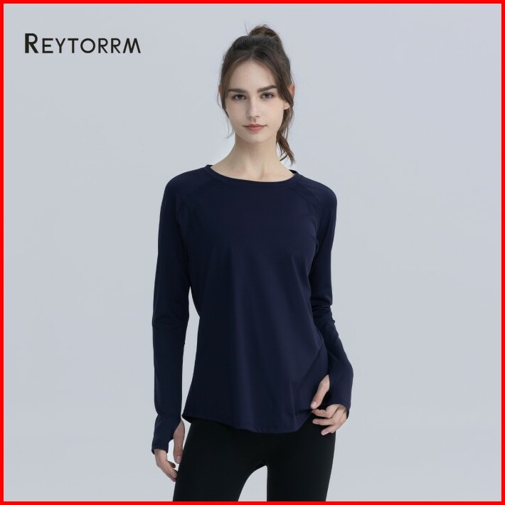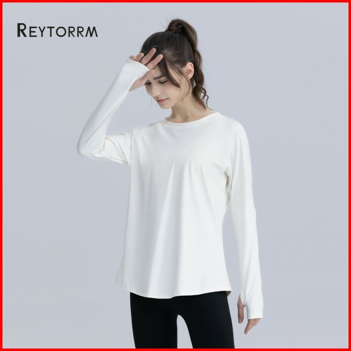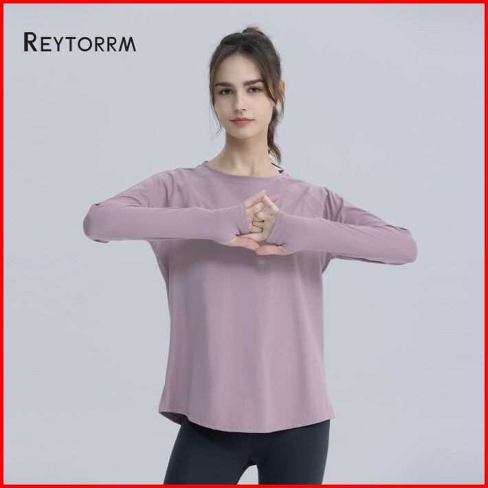 Reytorrm Atasan Yoga Lengan Panjang Wanita Pakaian Lari Gym Sport