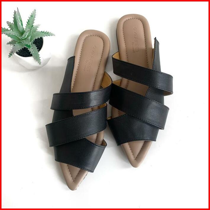 Naura Mules Wanita Bigsize 41-48 Garansi 60 Hari Sendal Karet Sepatu Hitam Kekinian Flatshoes Jumbo