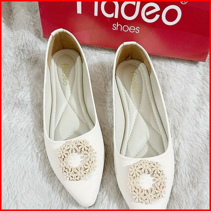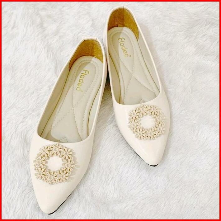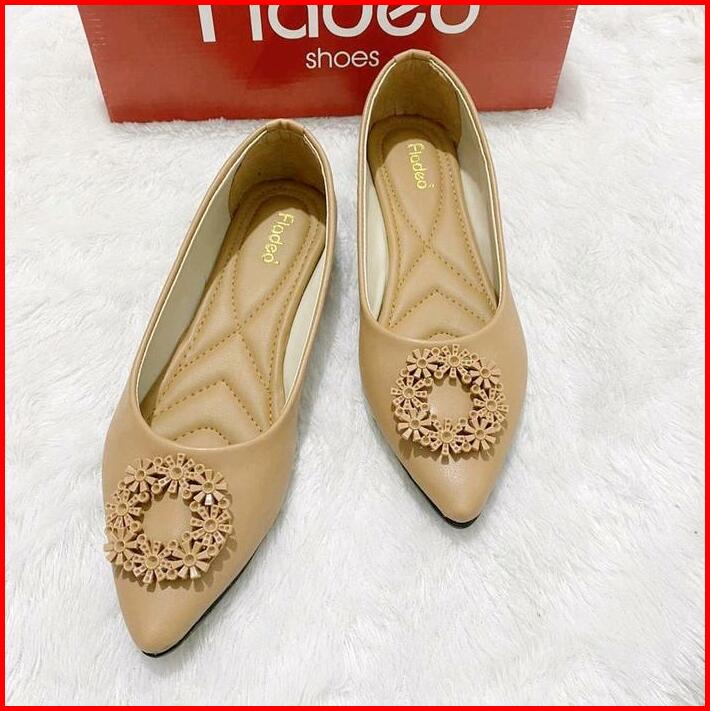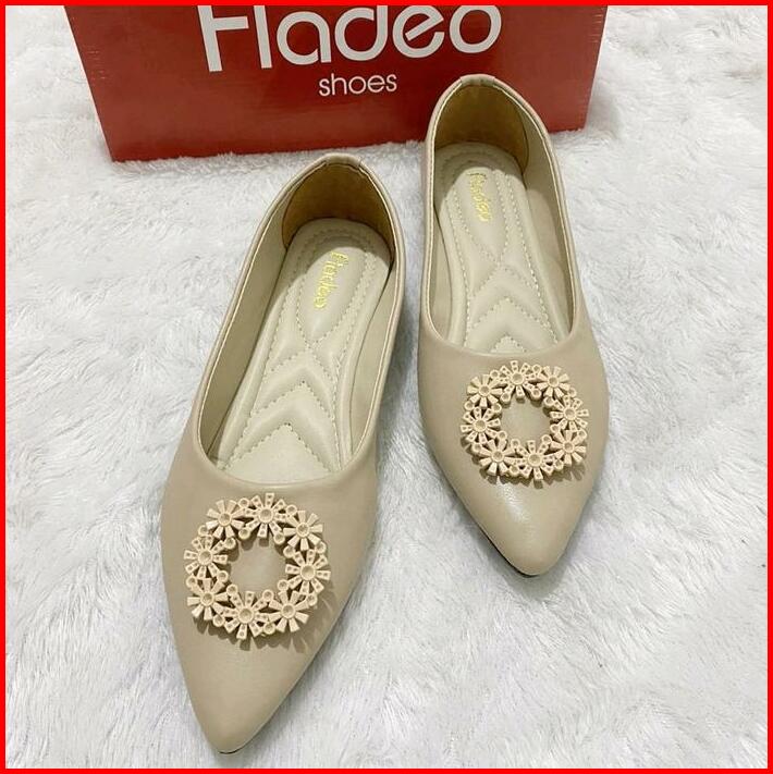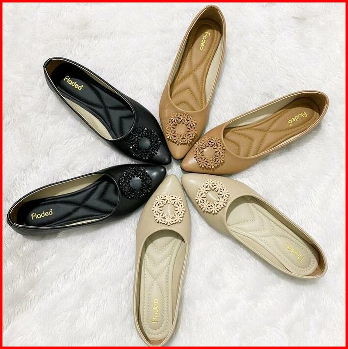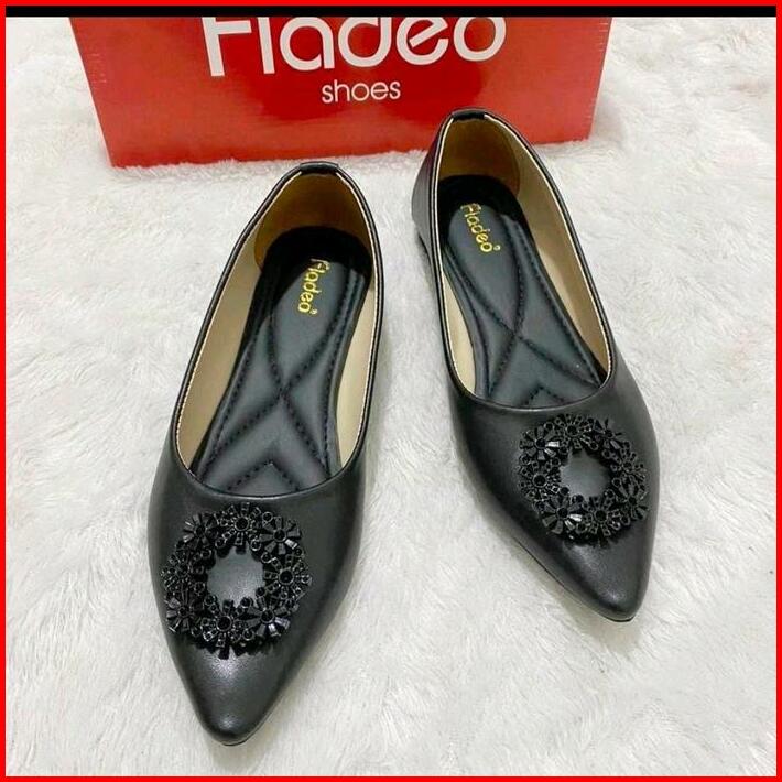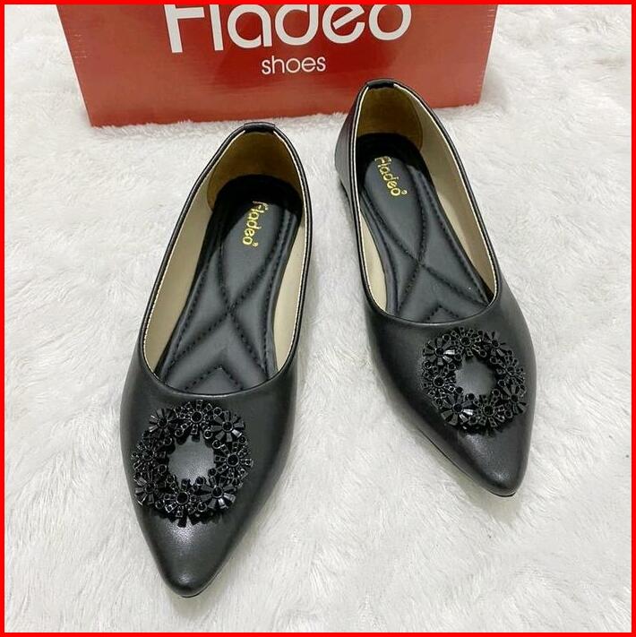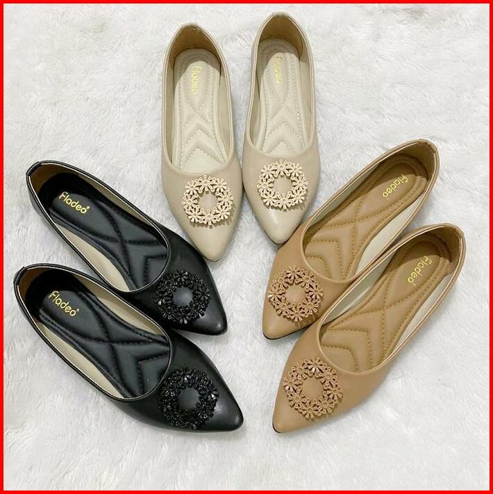 Flatshoes Wanita Bunga Bulat Teplek Manja Buat Ngantor Ngampus Ngemall Nongkrong Oke Banget Kerja Hitam