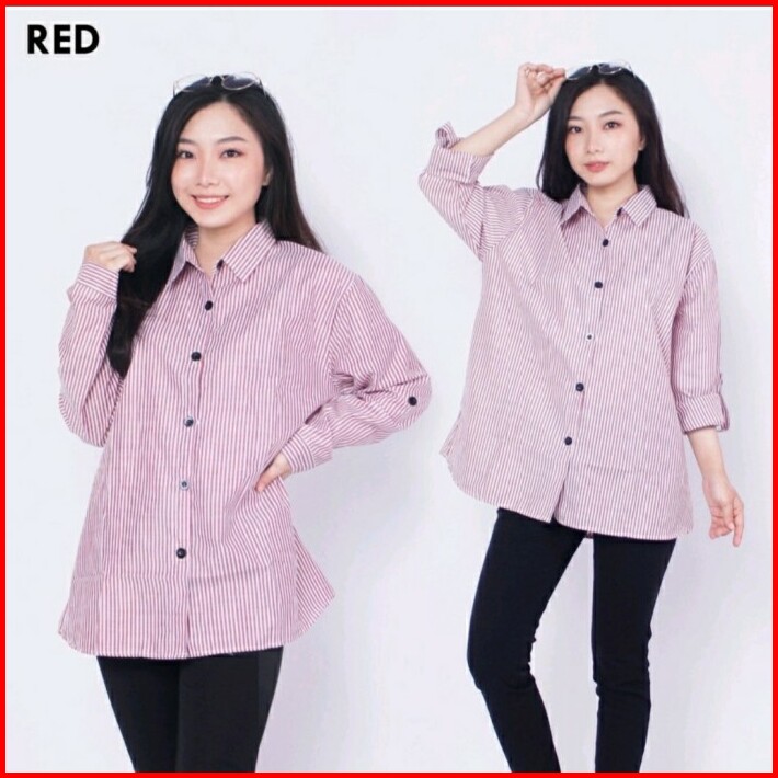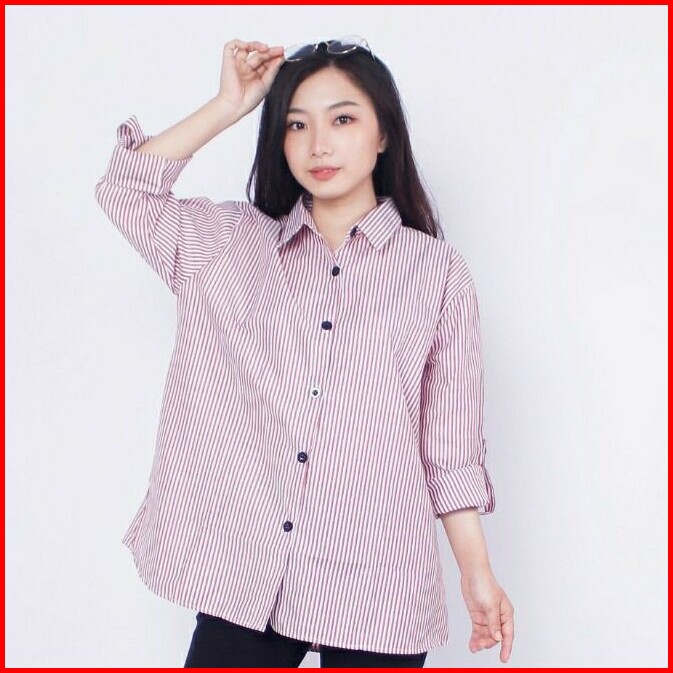 Promo Harga Kemeja Wanita Salur Fit To Salur Garis Xl Xxl