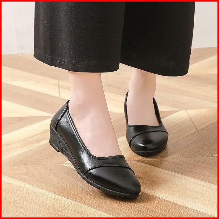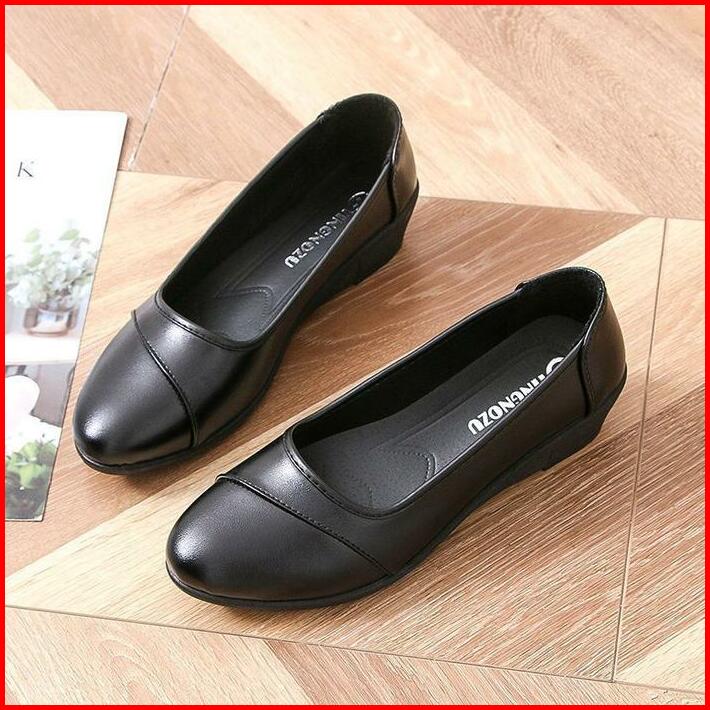 Lvr Free Box Sepatu Wedges Wanita Flatshoes Sepatu Kerja Wanita Hitam Polos Tg2100