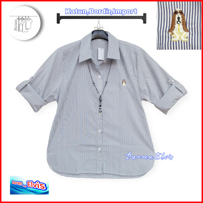 Kemeja Salur Biru Wanita Bordir Gukguk