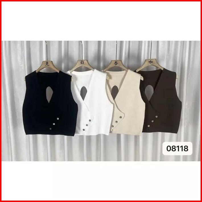 Miki Lia Basic Button Korean Knit Vest Atasan Outer Rajut Wanita Model Rompi Kekinian Terbaru 2024 S M L