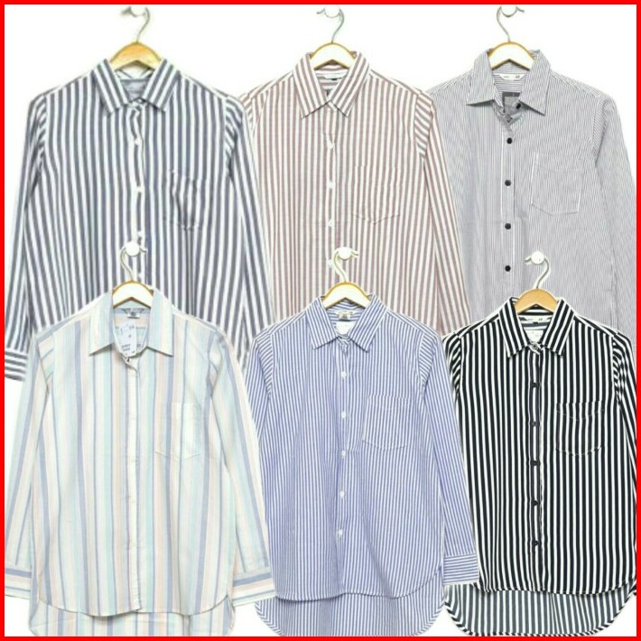 Kemeja Salur Wanita H M Kemeja Garis Cewek Kemeja Stripe Linen Branded