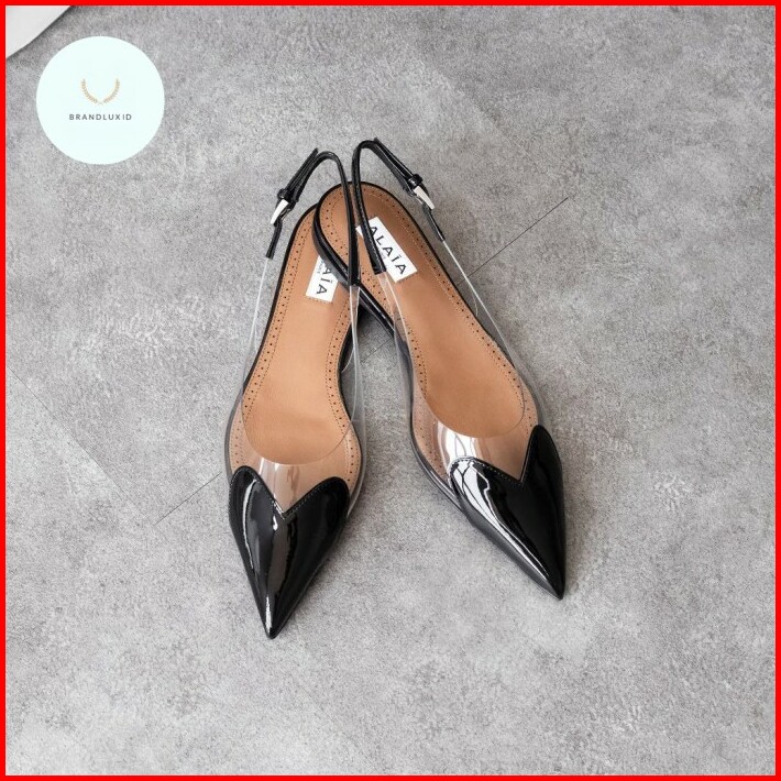 Alaia Le Coeur Patent Leather Slingback Flatshoes In Black