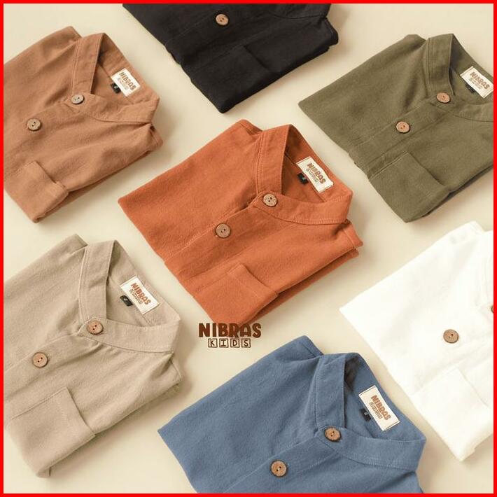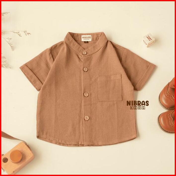 Alfatih Shirt Kemeja Anak Laki-laki Lengan Pendek Kemko Baju Koko Atasan Katun Bahan Linen Model Korea Kancing Kerah Mus