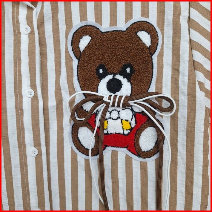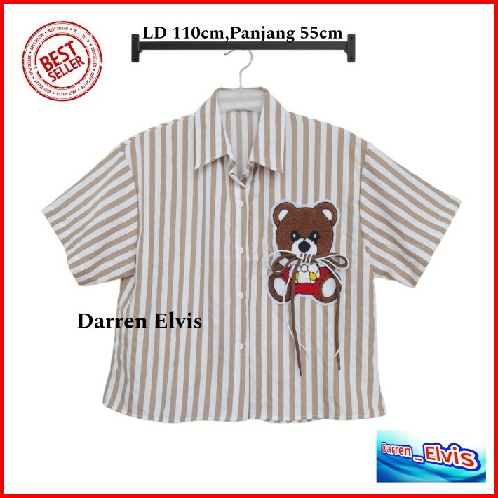 Kemeja Wanita Salur Lengan Pendek Motif Bear Sc001