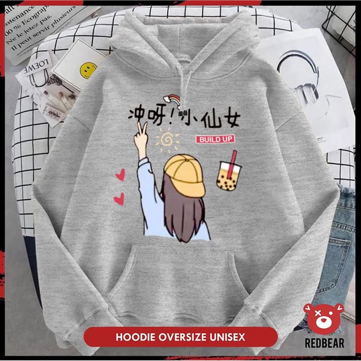 Redbear Hoodie Jumper Perempuan Topi Korea (Sablon) M-XXL Wanita dan Pria original terbaru terlaris elegant