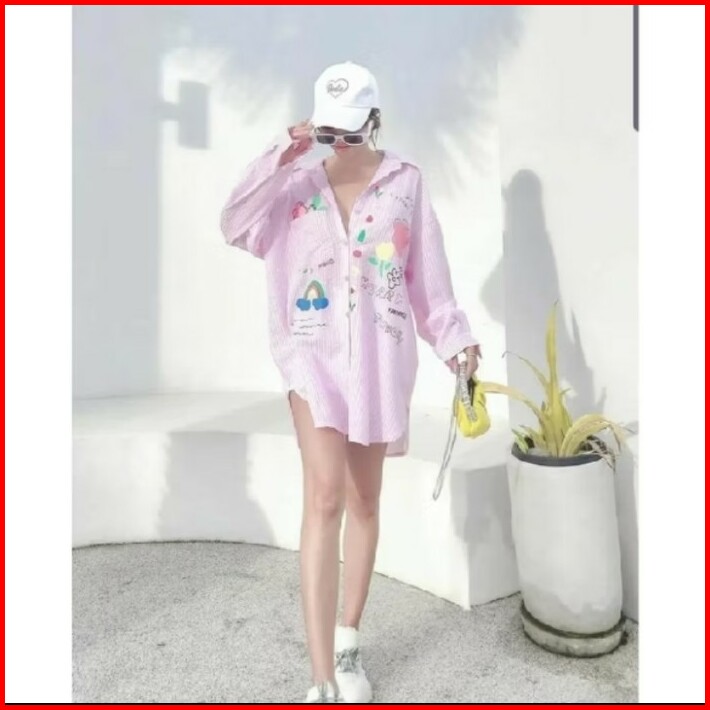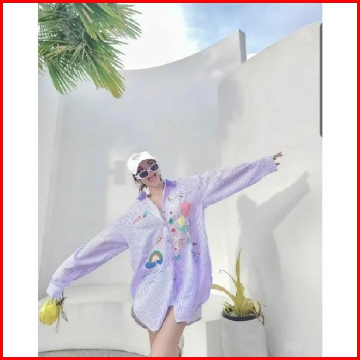 Kemeja Wanita Oversize Bangkok Stripe Salur Warna Pastel