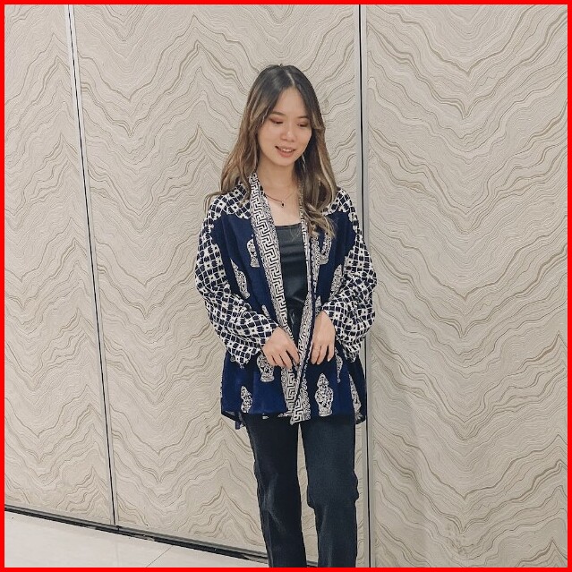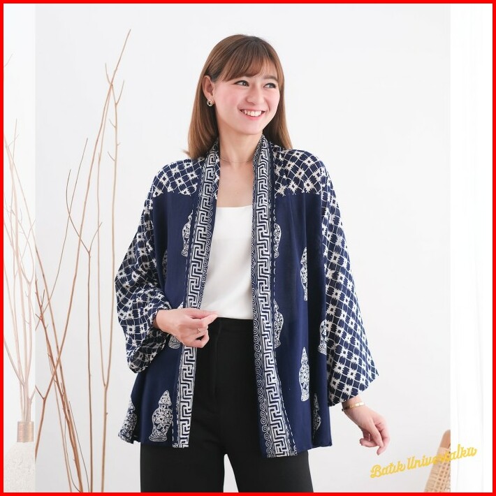Cardigan Batik Cap Modern Motif Guci Kendi