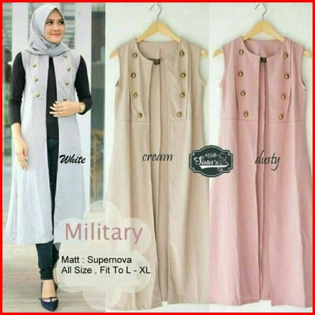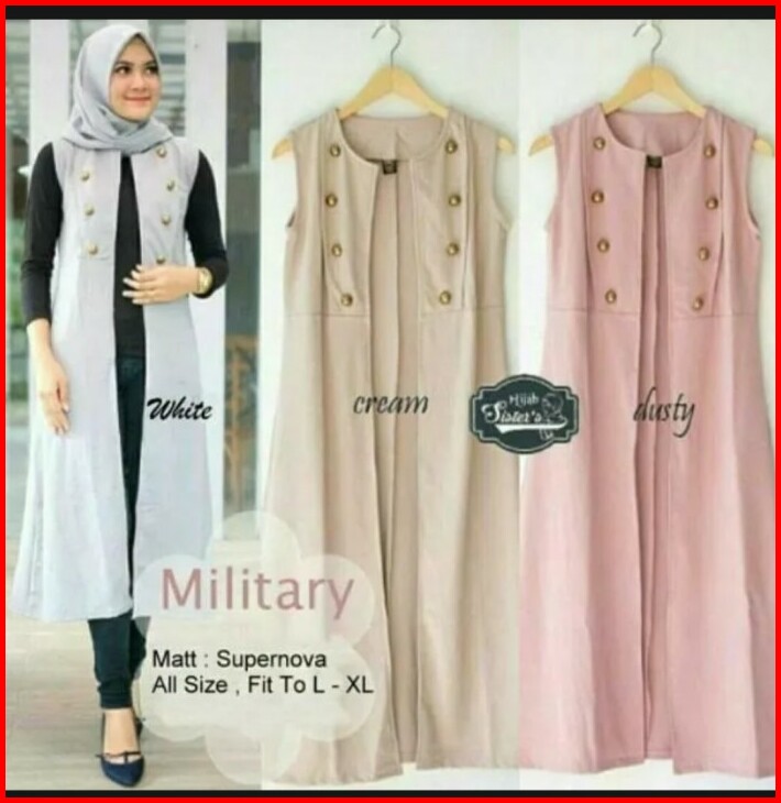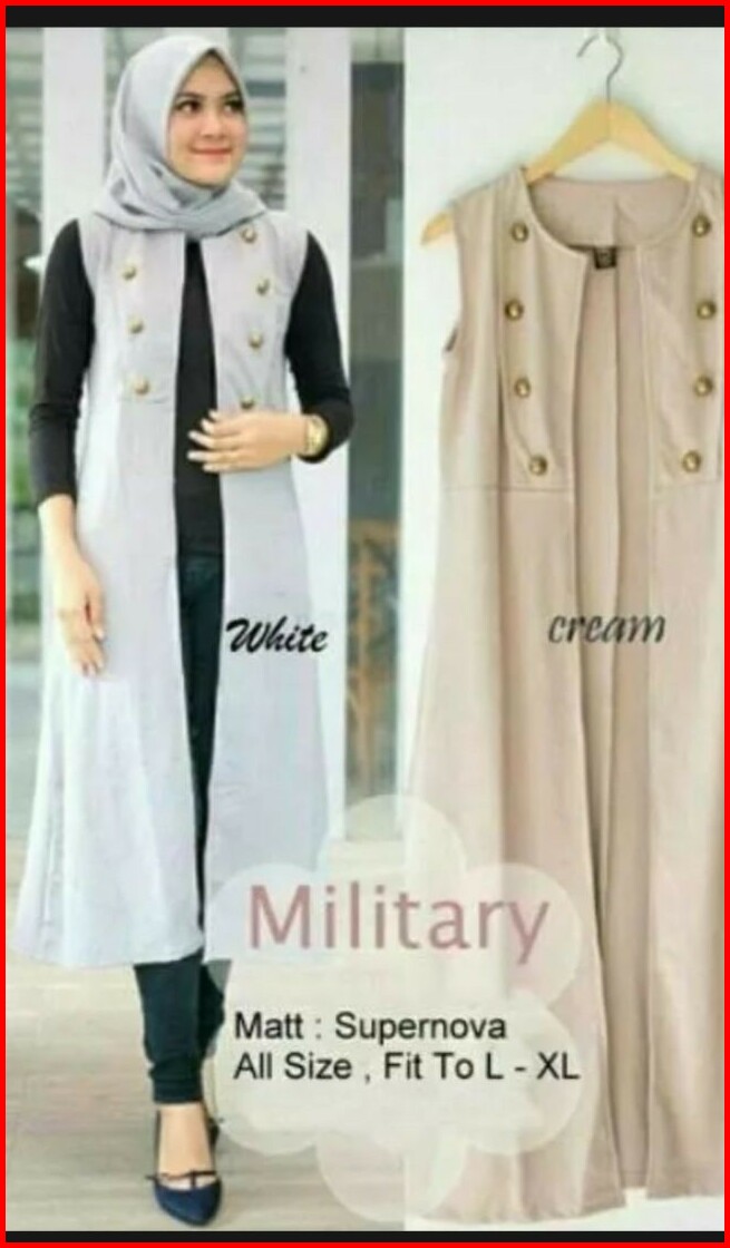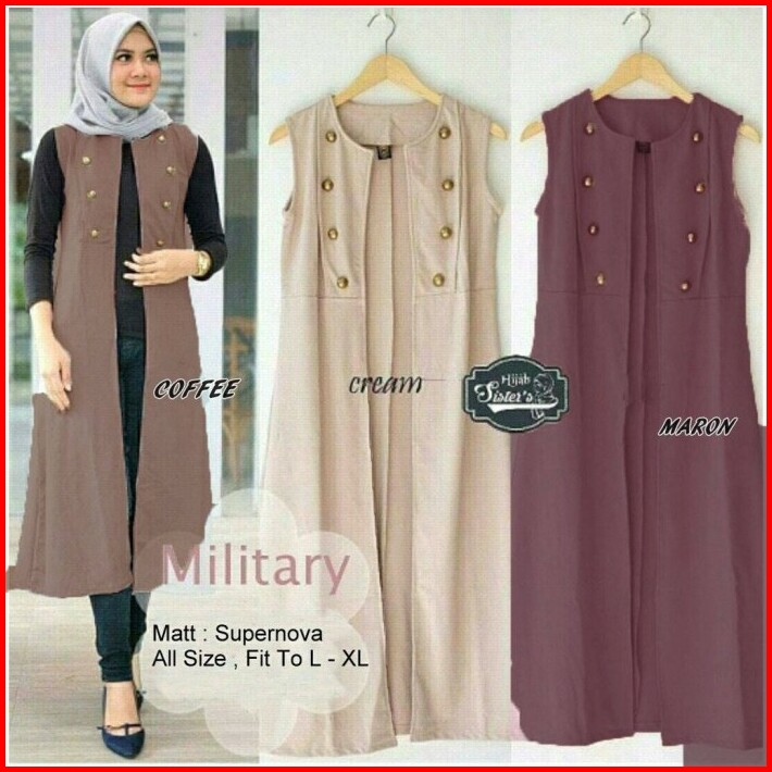 Dandelia Military Vest Fashion Muslim Long Cardigan Vest Coat Wanita