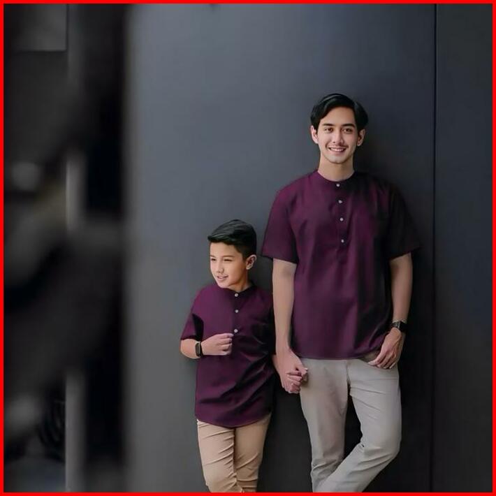 Baju Koko Couple Warna Burgundy Ayah Anak Laki-laki Usia 3-12 Tahun Fashion