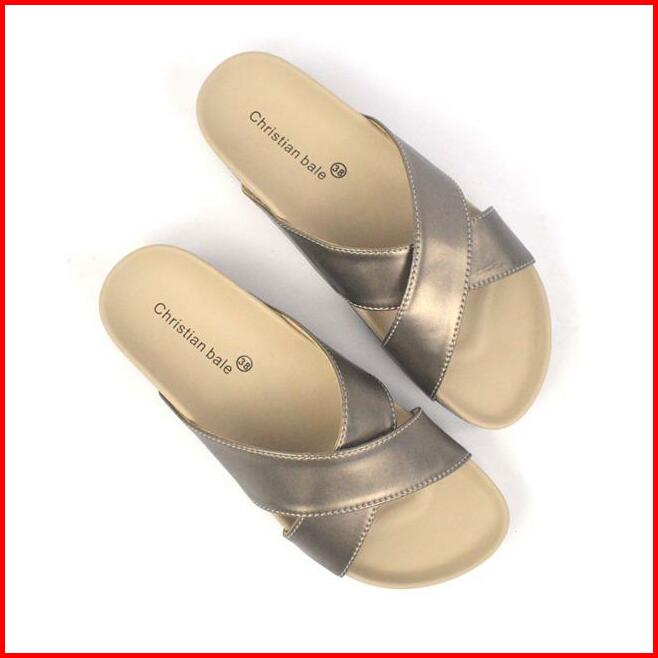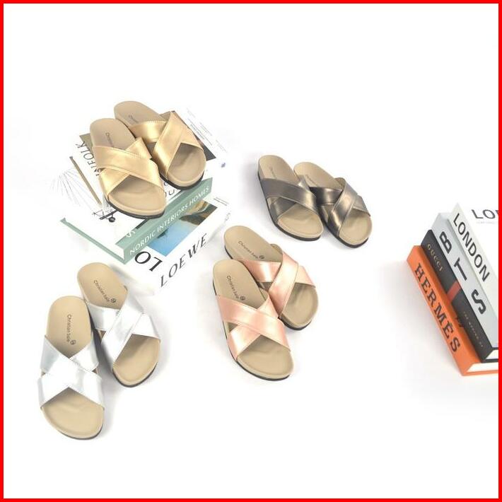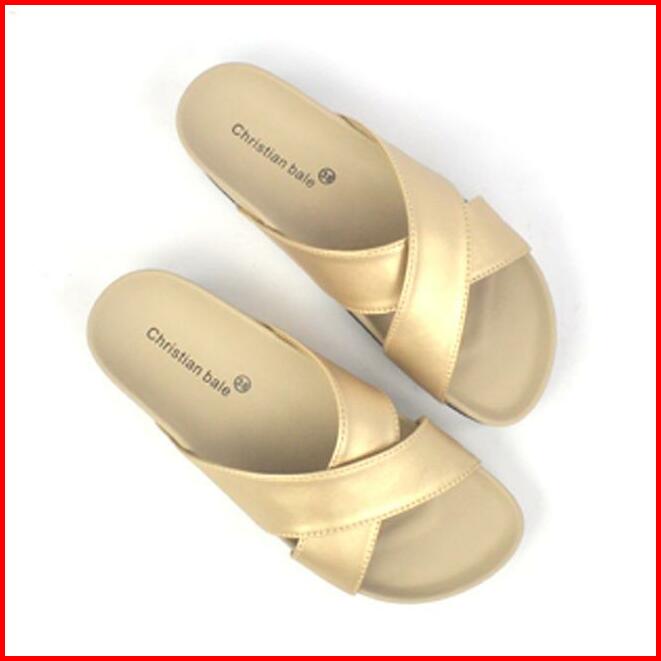 Christian Bale Jessica Sandal Flat Platform Cewek Selop Wanita Casual Kekinian Terbaruan Dua Silang Cantik Sendal Jepit