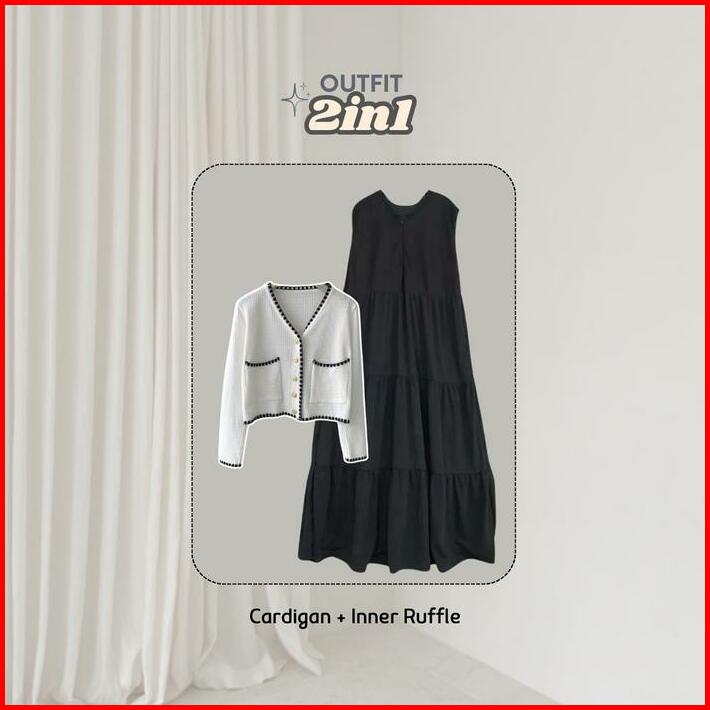 Oneset 2in1 Korean Style Cardigan Inner Dress Ootd Remaja Ala Selebgram Outfit Simpel Cewek Imut
