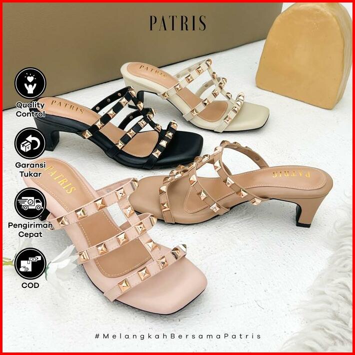 Patris Amanda Sandal Wanita Heels Hak 7 Cm Black Sendal