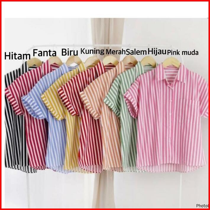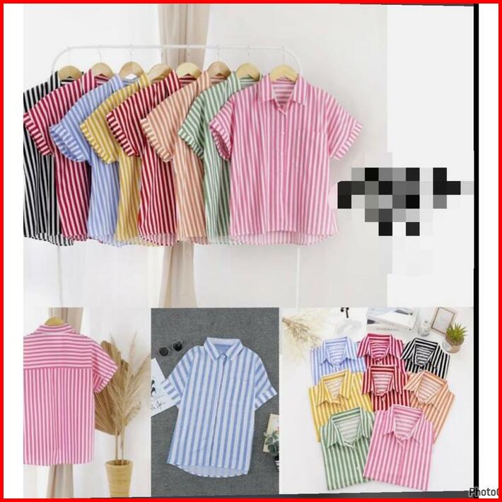 Kemeja Lengan Pendek Lengan Batwing Kemeja Wanita Salur Bangkok Lengan Pendek 8169