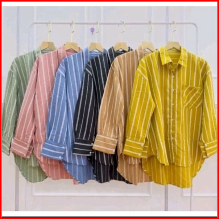 Blouse Salur Kemeja Lengan Panjang Wanita Linea Blouse Motif Monalisa