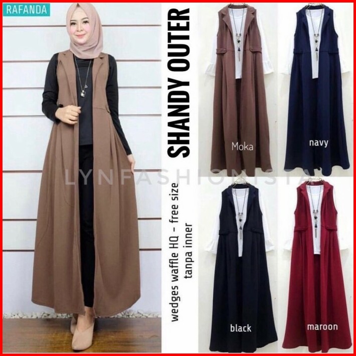 Cardigan Panjang Wanita Tanpa Lengan Shandy Outer Long Cardy Kerah