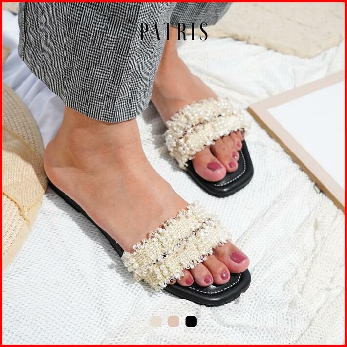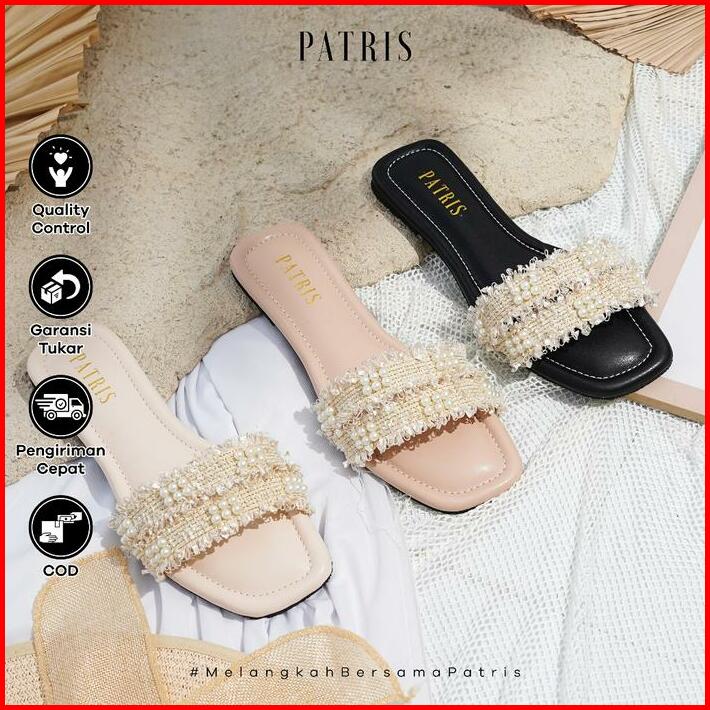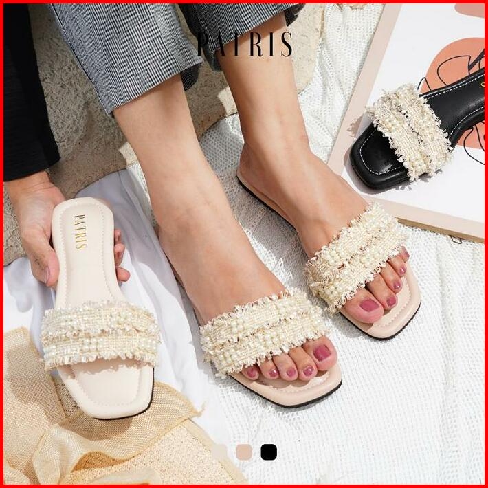 Patris Ravinia Sandal Wanita Flat Teplek Black
