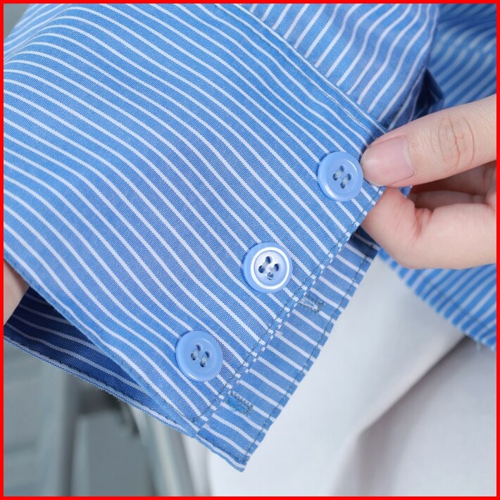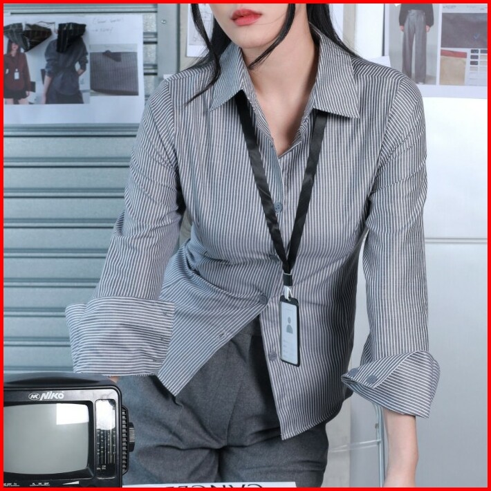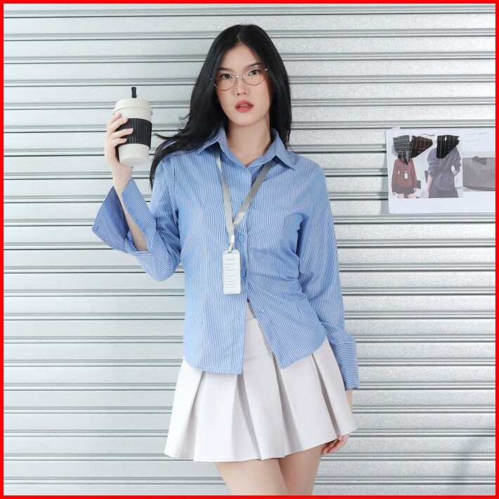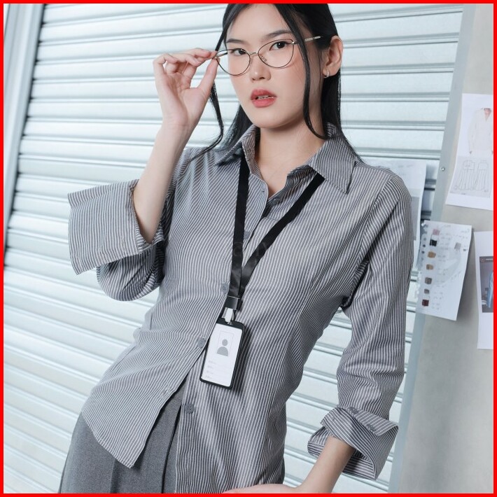 Fally Erina Shirt Wanita Kemeja Salur Kemeja Kerja Lengan Panjang