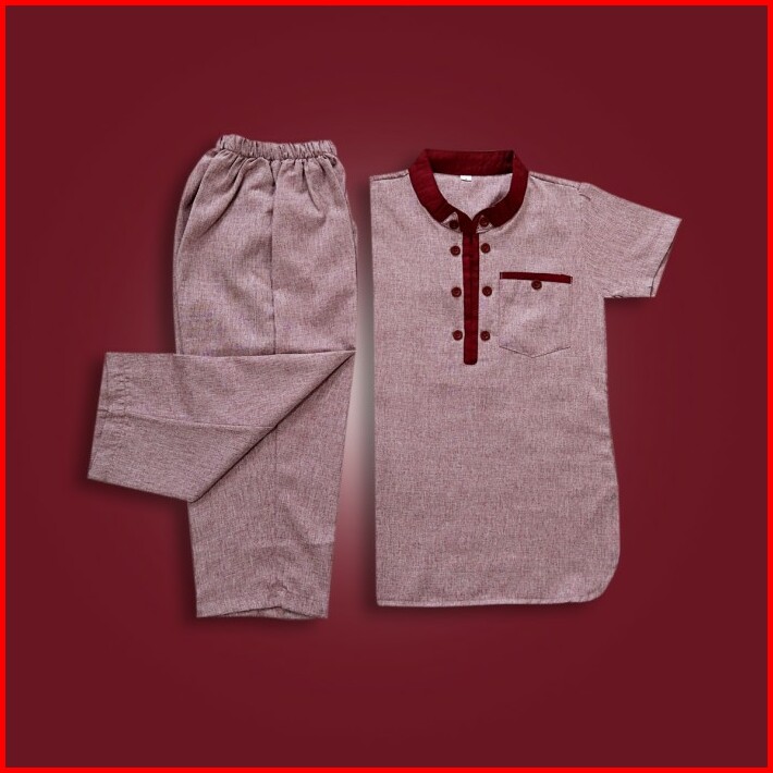 Baju Koko Setelan Madina Anak Laki-laki -premium- Marun 2 4 6 8 10thn