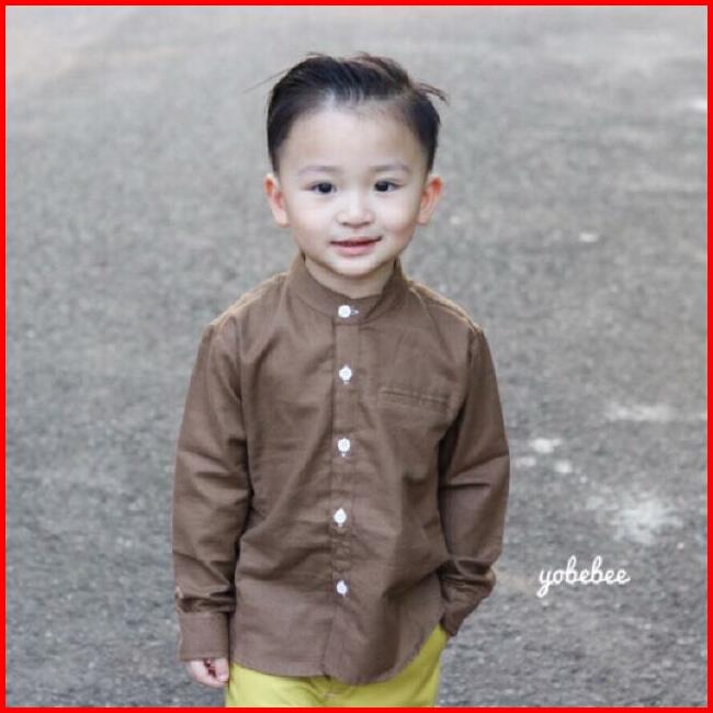 Yobebee Kemeja Linen Tangan Panjang Anak Laki Laki Usia 2 3 4 5 6 8 10 12 Tahun Baju Atasan Kids Polos Model Casual Form